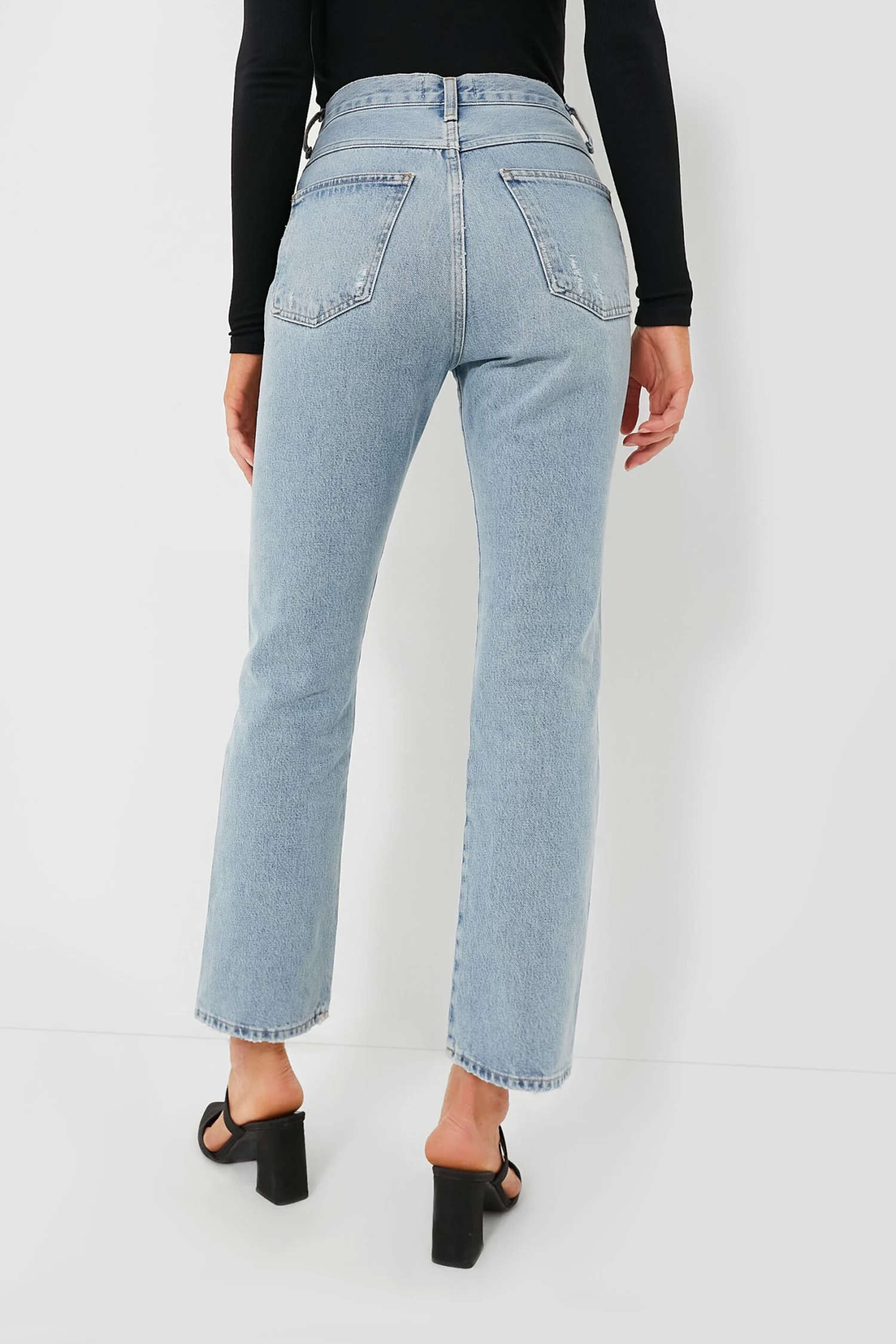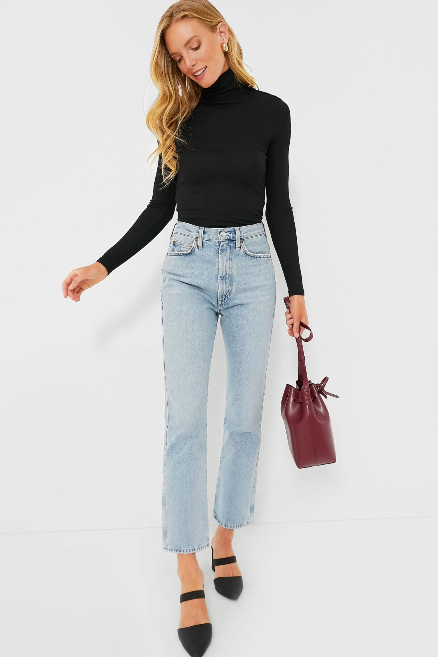 The Riptide Pinch Waist High Rise Crop Kick Flare features a retro silhouette with slight ease through the thigh and a kick at the bottom opening. We are pairing these jeans with cozy sweaters and mules for a comfortable, yet fun look!