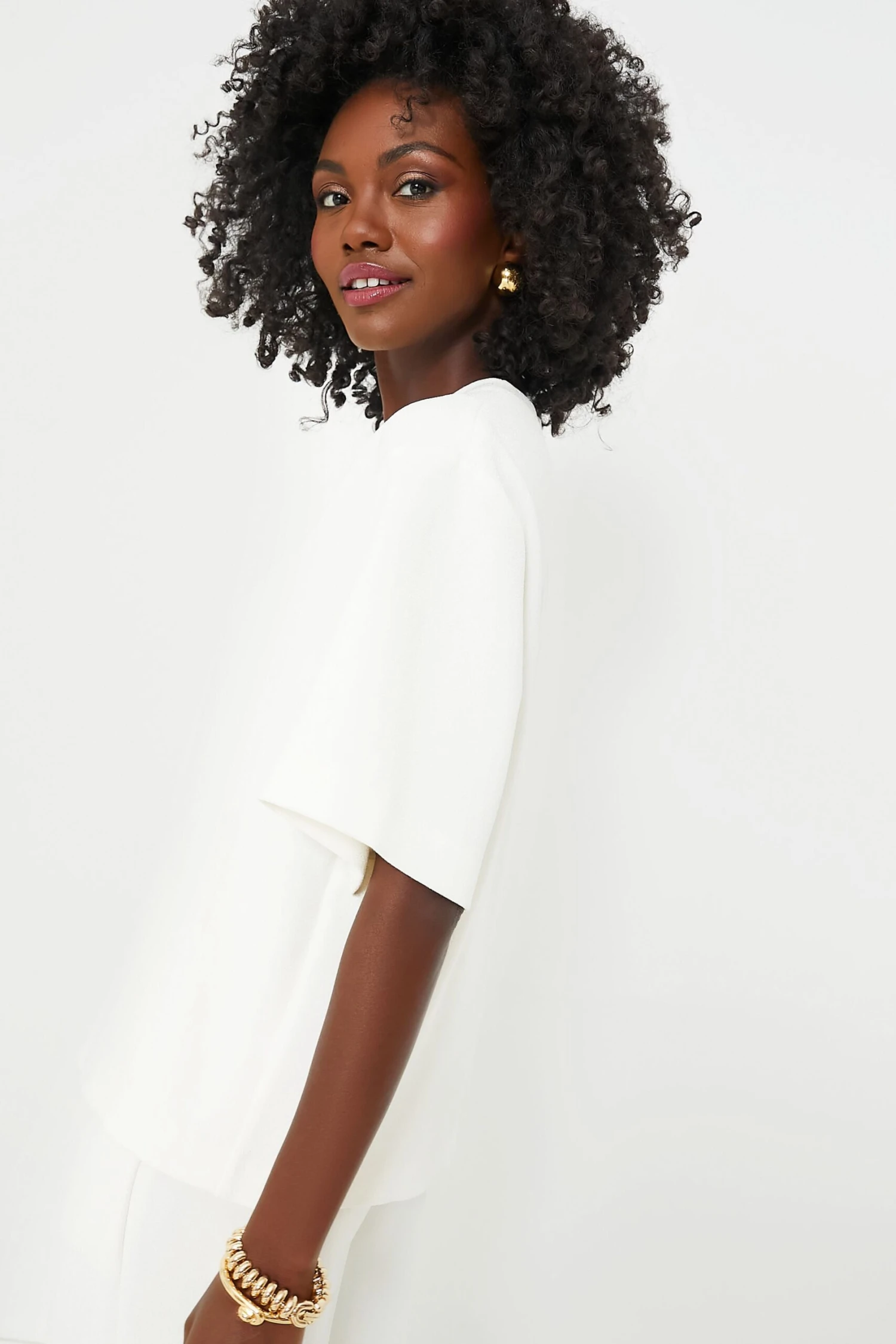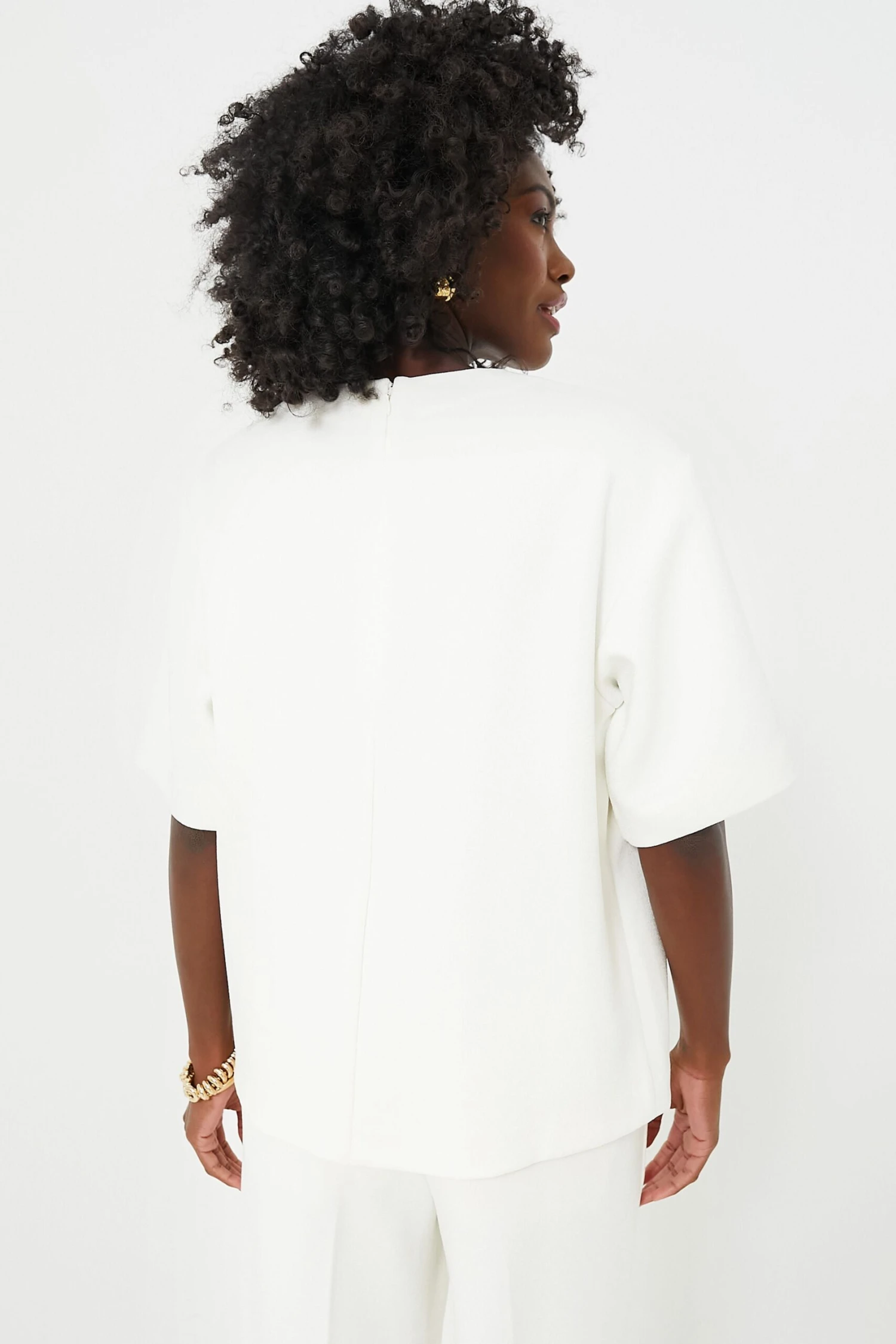 We know it can be difficult to find those perfect core pieces you’ll wear again and again, so we made it simple and brought you the Ivory Maddie Top. Designed for an oversized silhouette in a soft textured crepe fabric, this everyday style features a clean crew neckline, wide elbow-length sleeves, and an invisible zipper at the back neck. Pair it with the matching Ivory Lyra Trouser for a mono-tone chic look or throw on a pair of denim, a mini skirt, or shorts– you name it– the possibilities are endless for this classic wear everywhere number.