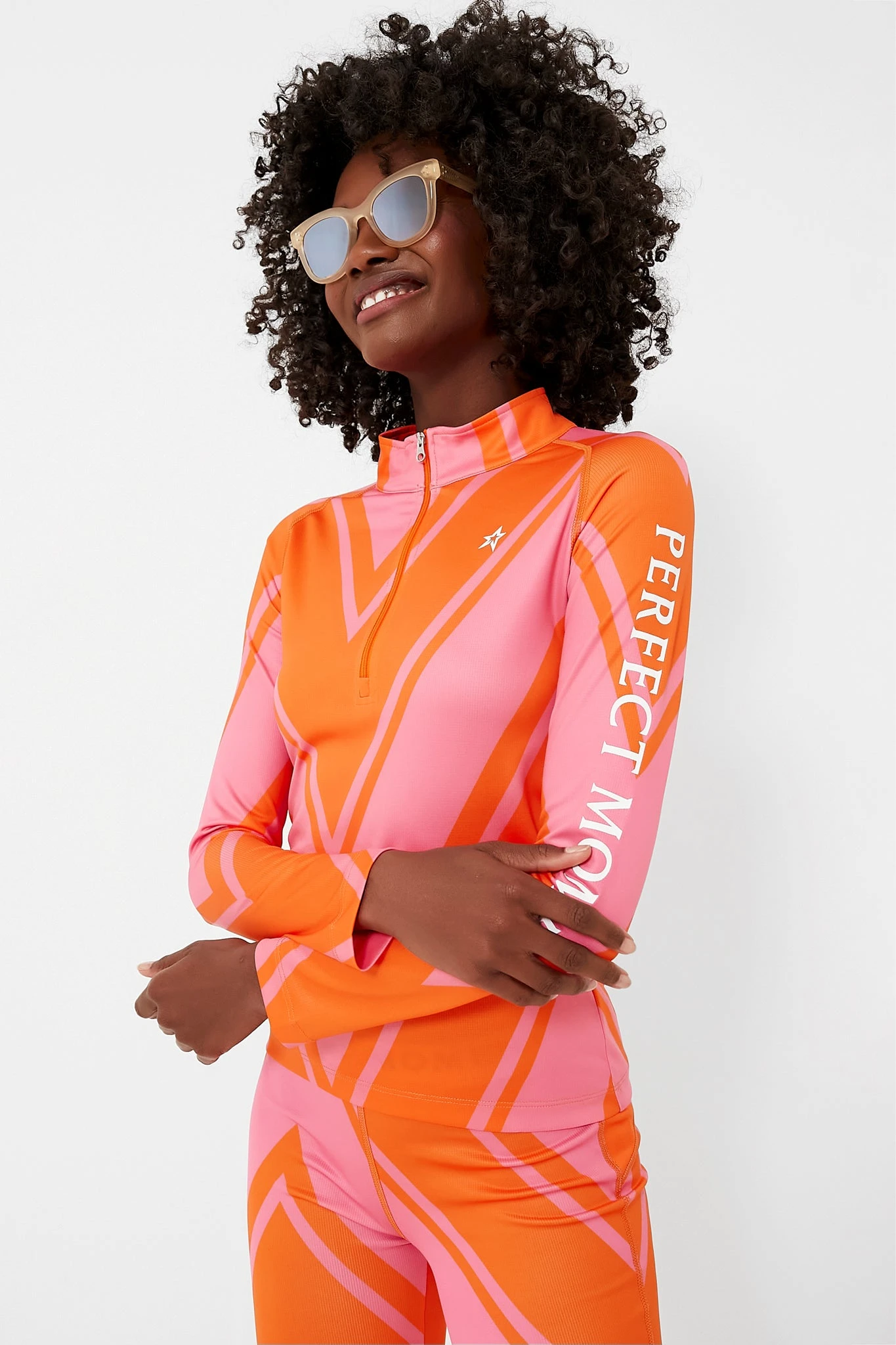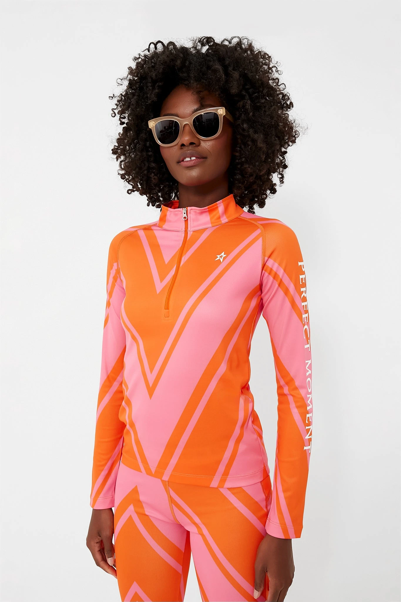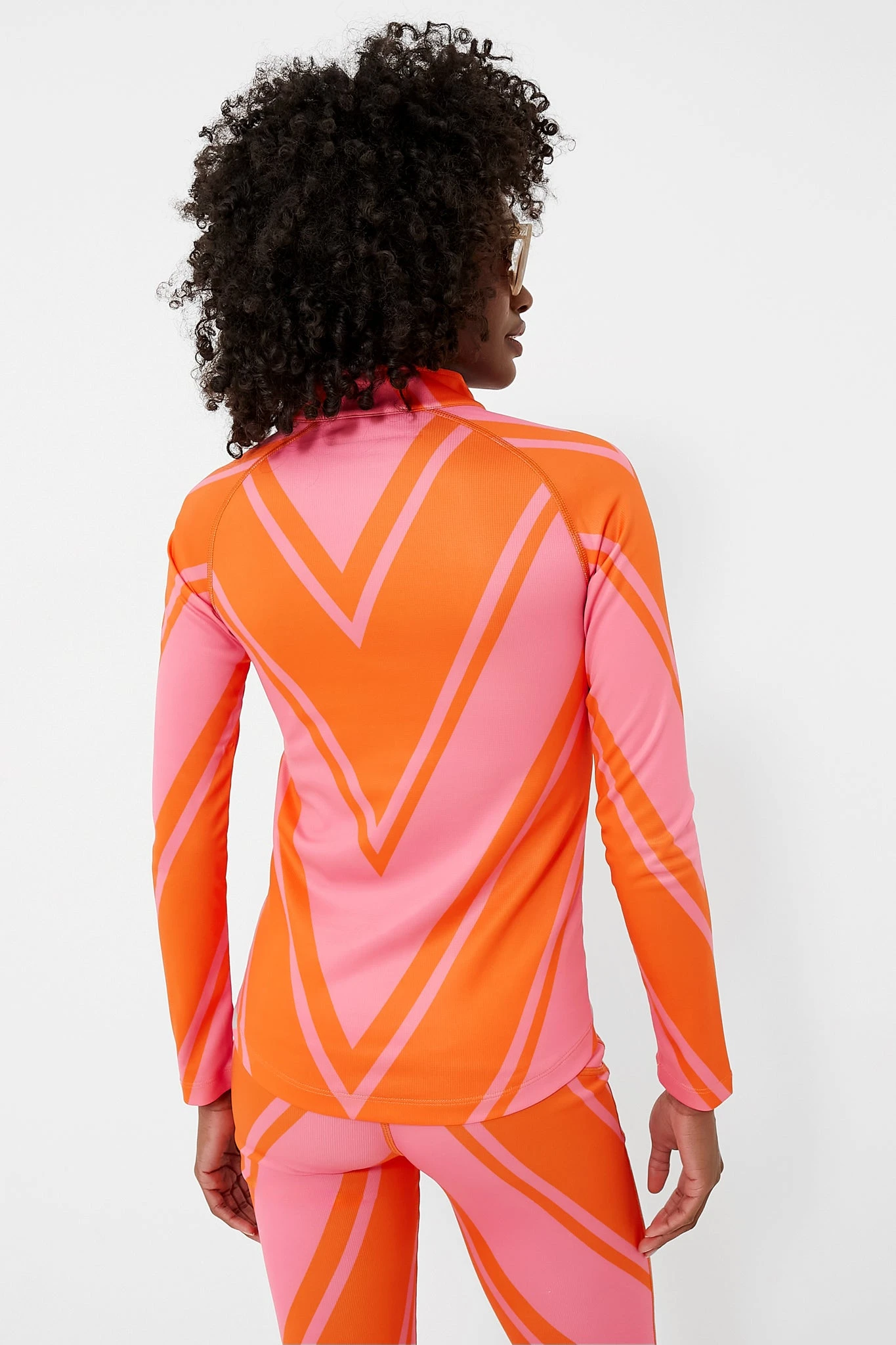 A thermal base layer top is a true essential for any ski trip. Featuring a fitted design, moisture-wicking fabric, long sleeves, and a half-zip mock neck, the Azalea Pink and Orange Chevron Print Thermal Half Zip is a fun, stylish choice for a day on the slopes. This thermal base layer is elevated with a retro neon print and will ensure you are prepared to take on the elements. Pair with the Azalea Pink and Orange Chevron Print Thermal Pant for an adorable matching set.Â