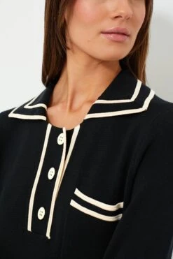 - Contrast trim on collar, cuffs, placket, pockets, and hem
