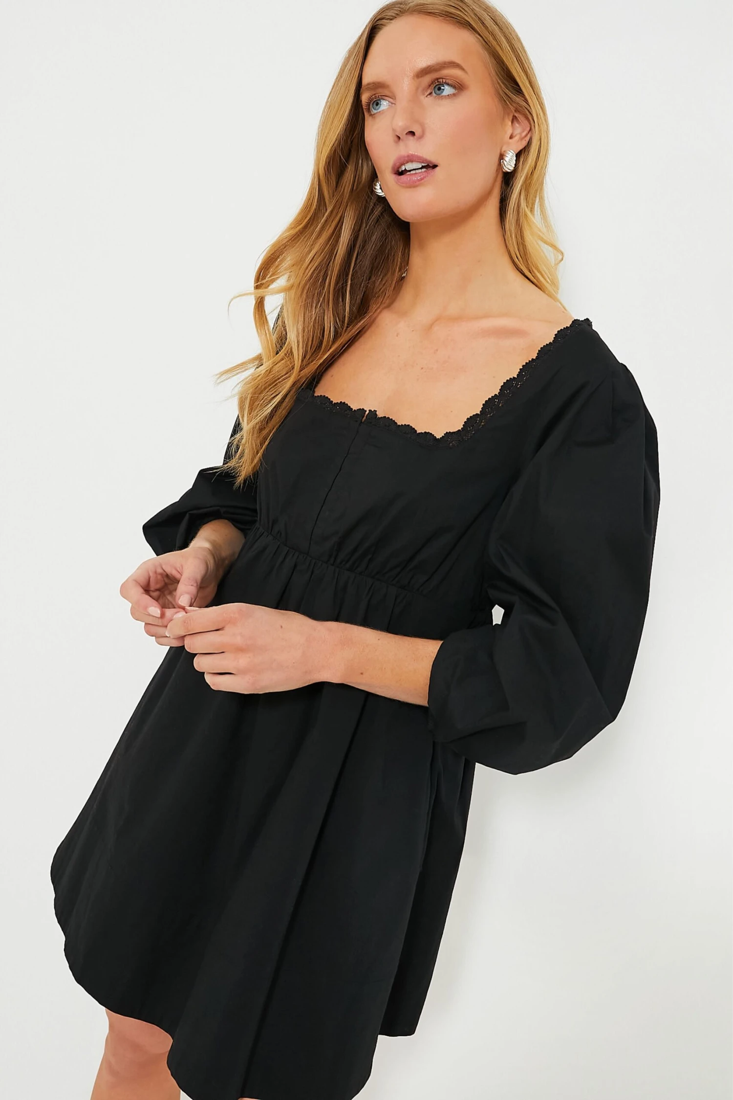 Classic, sleek, and effortless, the Black Jenny Dress is the easy style that we know will live in your closet for years to come. Featuring a chic babydoll silhouette, a flattering square neck with a lace trim, functional side pockets, and dramatic elbow length puff sleeves, this versatile mini seamlessly transitions from day to night. We love wearing it with sneakers and a tote for an easy daytime look and switch to sandals and statement jewelry for a night of cocktails and celebration with friends.