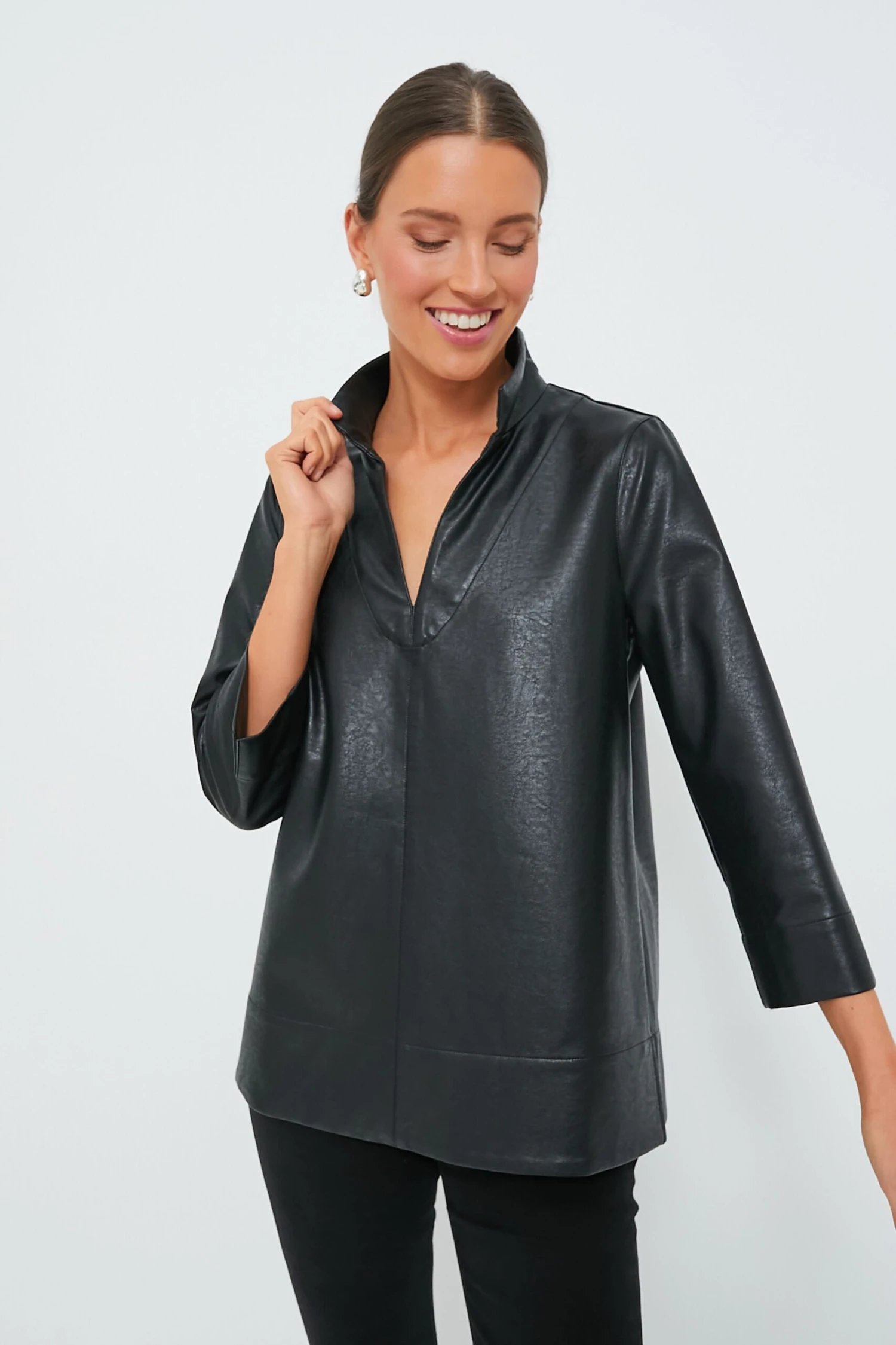 Effortlessly chic, the Black Leather Margot Top takes everything we love about an easy blouse and elevates it with a sleek stand collar and and a luxe yet wearable fabric to create an instant classic in your closet. Sophisticated in style, this sleek style pairs well with denim and flats for a more casual look when called for, or with a mini skirt and heels for a flirtier vibe. No matter how you wear it, this is the perfect style staple.