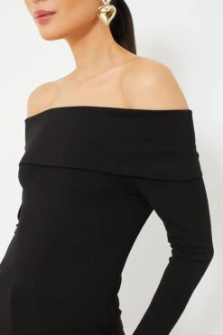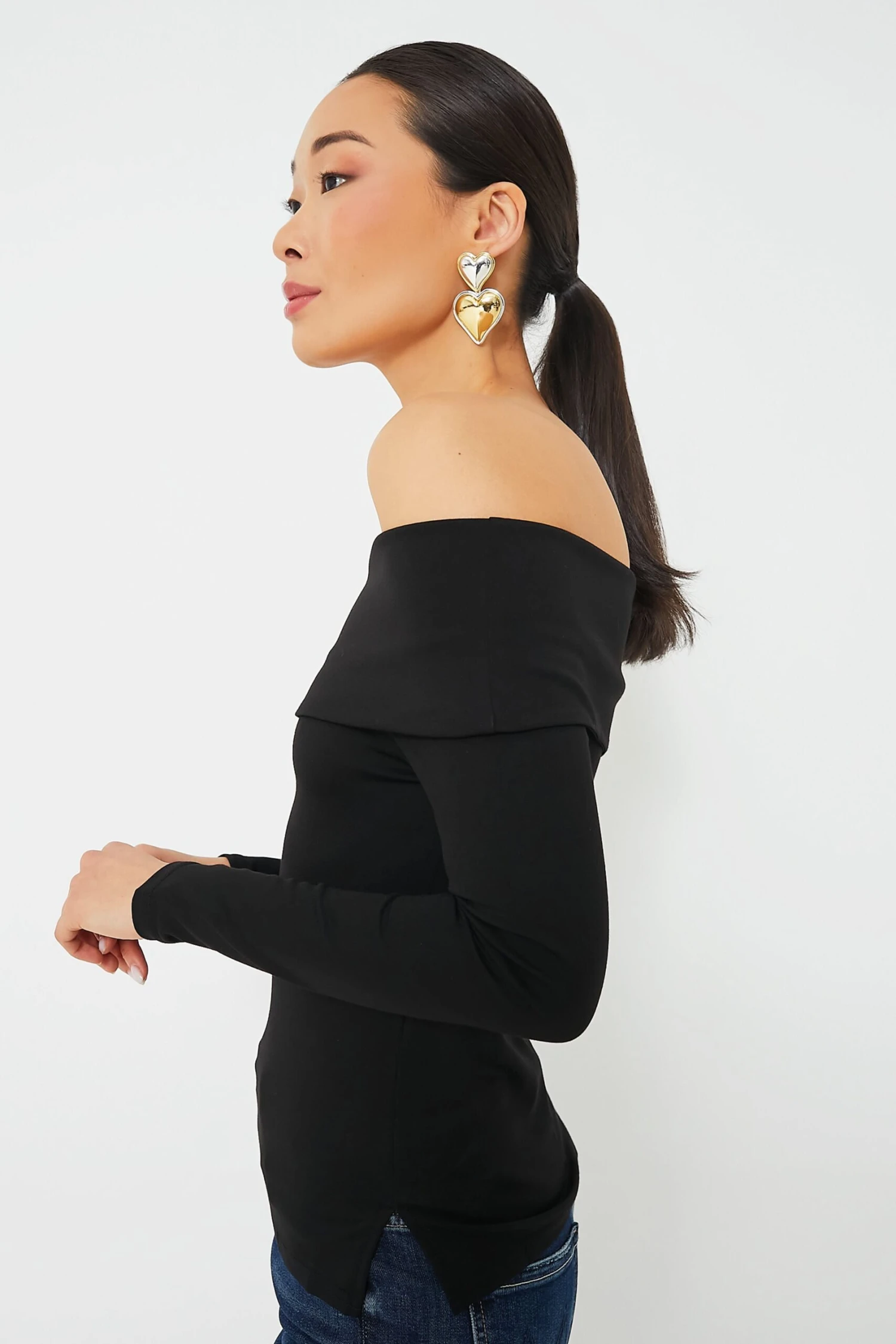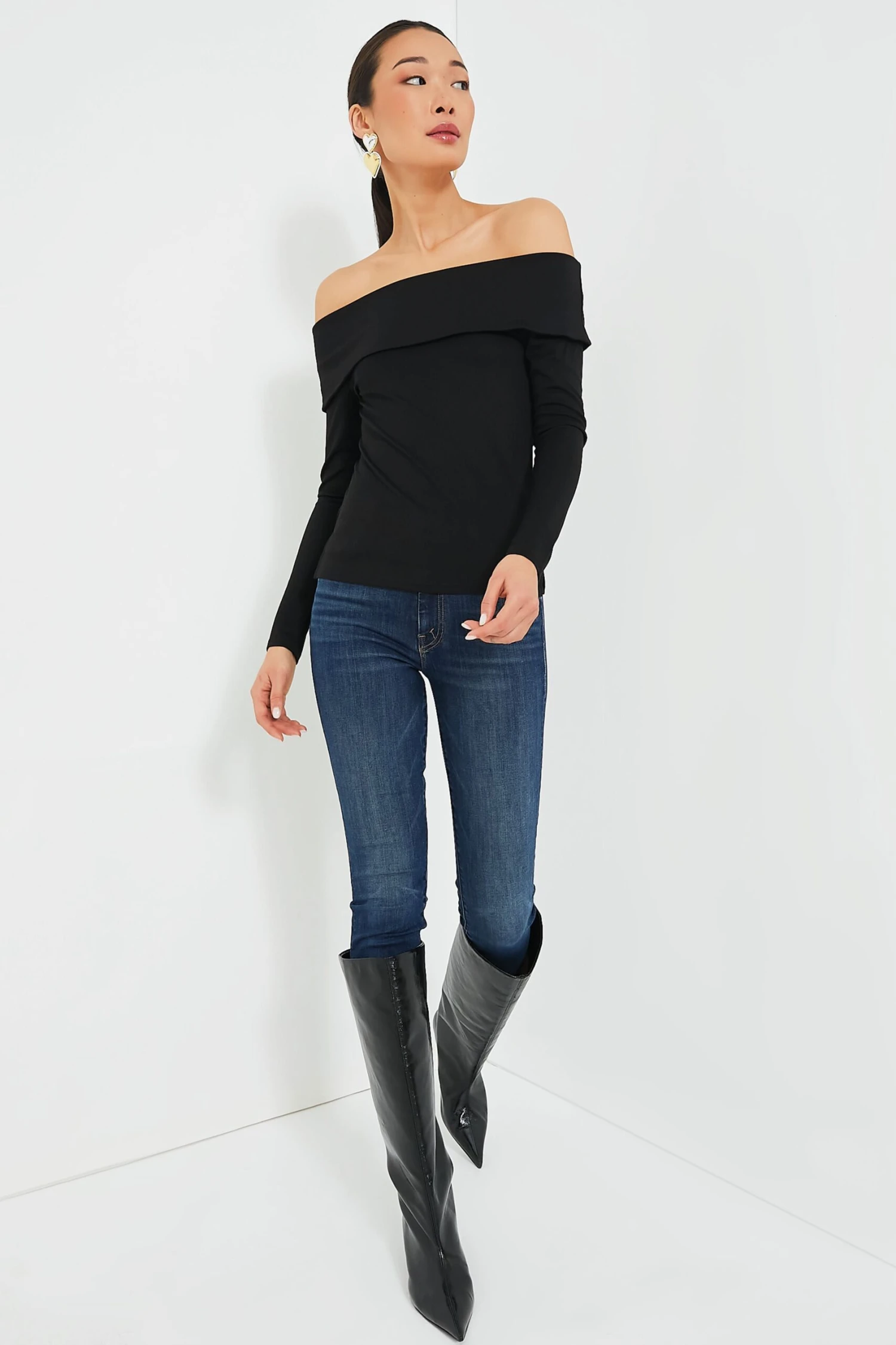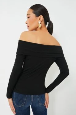 Elevate your top game with this positively-Parisian look. The Black Off The Shoulder Sweater Top from Moon River is a sleek style with a fold-over neckline, long sleeves, and a fitted body. Elegant enough to be the star of the show, yet simple enough to be adorned with fun accessories, this versatile show-stopper is a necessity in your closet. Pair with denim and boots or a mini skirt and heels!