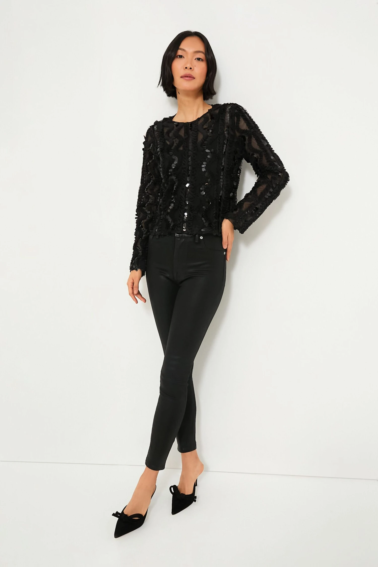You heard it right! Our best seller – The Black Sheer Long Sleeve Sutton Blouse is back right in time for the festive season. Boasting sequins and tulle, this slightly cropped top is sure a showstopper. Layered with a tank under, this top is a no-brainer for your next date night, party, or any event that calls for a little glamor! Wear with black jeans and chic flats for a monochromatic look to let the sequins shine!