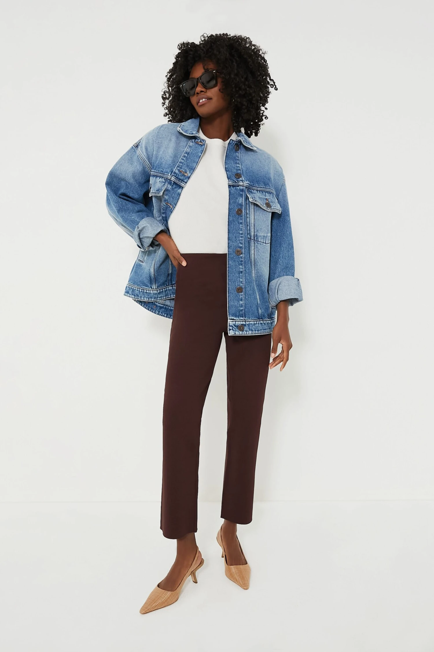 A Tuckernuck staple, the Brown Ashford Pants are your new wear anytime, anywhere bottom. Crafted from a stretch knit fabric that holds you in with the perfect touch of compression, this closet staple features a high rise and cropped kick flare hem that is equally flattering and effortless. We are pairing these throw-on-and-go bottoms with everything from blouses to sweaters to blazers.Â