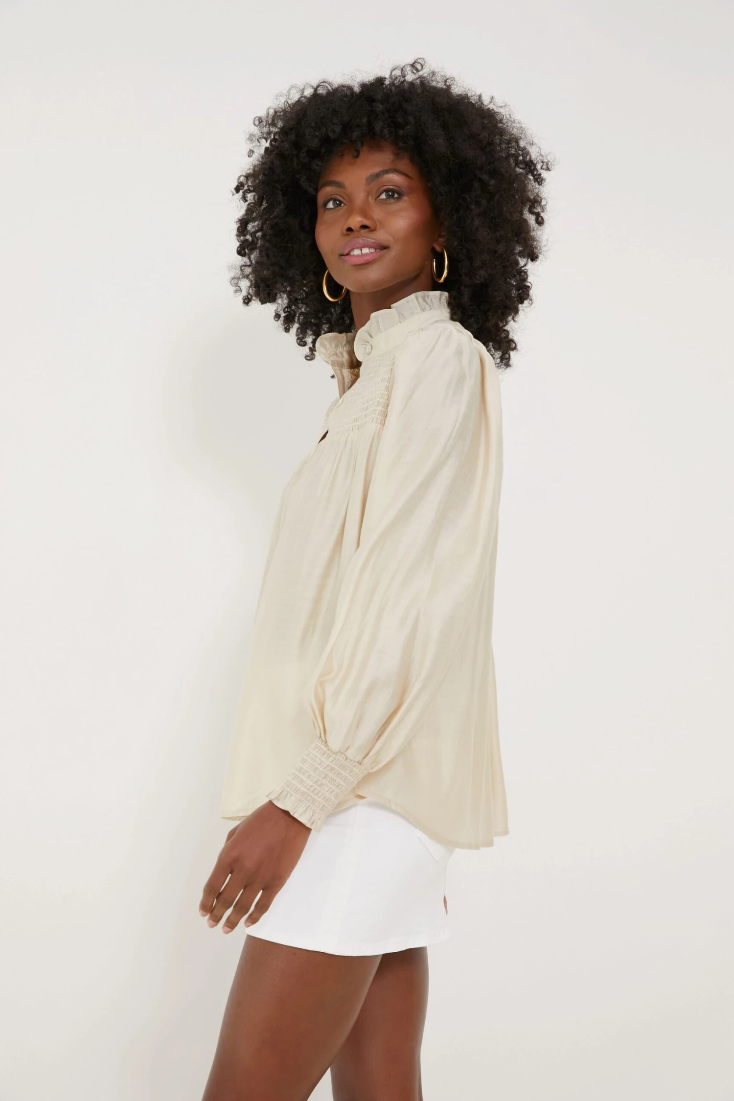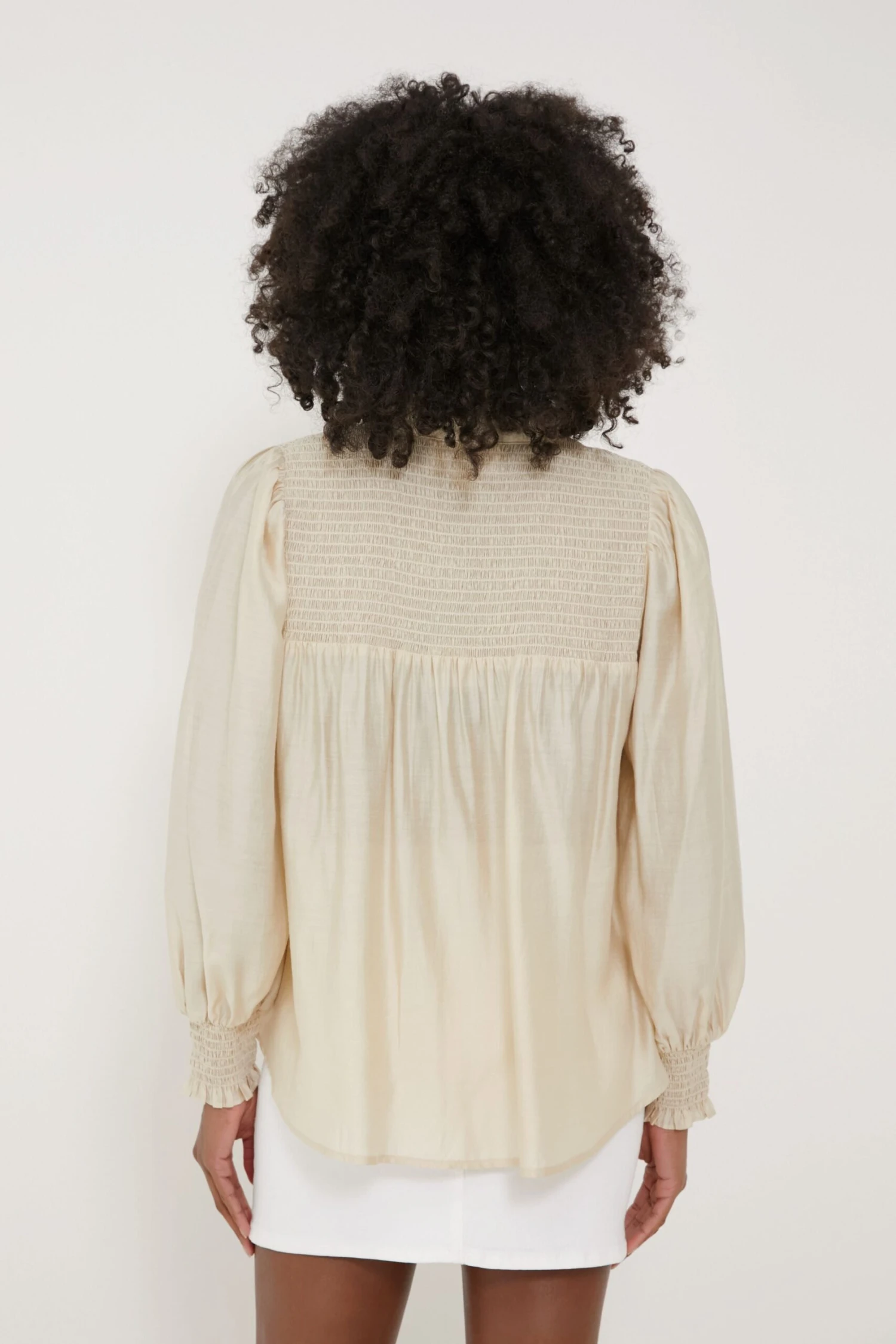 An effortless, lightweight top that keeps things polished and updated at the same time? Count us in! The Champagne Jaia Smocked Blouse checks all the boxes when it comes to closet staples. Designed with a classic button front placket, it’s the smocking details at the neckline and cuffs that make this style stand out from the rest. For days when you don’t know what to wear and crave a put-together look, pair this timeless silhouette with denim of any color and heels for a look that’ll feel good and stand the test of time.Â