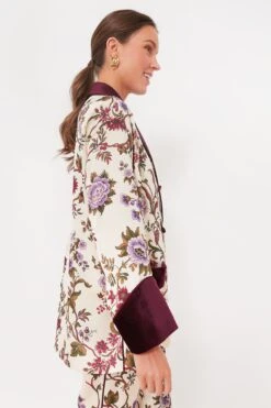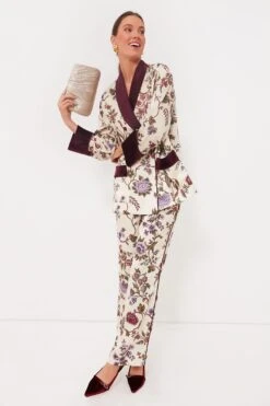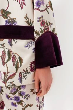 Sure to turn heads wherever you go, the Chantilly Vine Smoking Jacket is truly one of a kind. Printed with one of our signature prints for the season and trimmed with velvet in a rich hue, this luxe style features an elegant shawl lapel and patch pockets at the hips to top off an already fabulous silhouette. Go full maximalist and pair it with the matching Solene pants, or style it with a mini skirt for a flirty look that’s sure to impress.