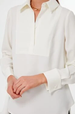 Fulfilling all your day to day wardrobe needs from the office, to brunch, to showers, to errands, the Cream Carrie Blouse is working overtime. This closet essential has a relaxed fit to keep you comfortable and cool during the warmer months and a high to low hemline for additional coverage in the back, but don’t be fooled, this elevated basic looks just as great tucked in for a polished feel. Add gold accessories and your go-to trousers for a effortlessly refined look no matter where the day takes you.