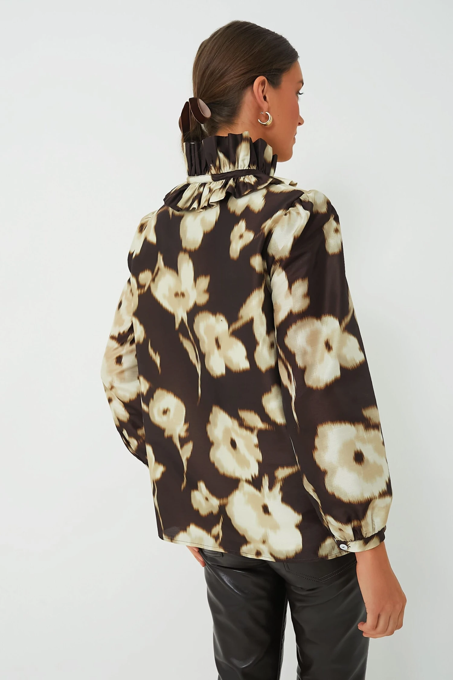The Dappled Hollyhock Bouvier Blouse is the perfect combination of fun femininity and sophistication. A stand ruffle collar plays well with the abstract florals and rich chocolate and ivory hues for the perfect mix of a simplistic statement style. Equally appropriate for brunch with the gals or evening get-togethers spent celebrating with old friends, it’s no wonder this blouse is a Tuckernuck favorite. We are pairing this blouse with denim and flats for a dressy day look and swapping for heels and gold accessories for party time.