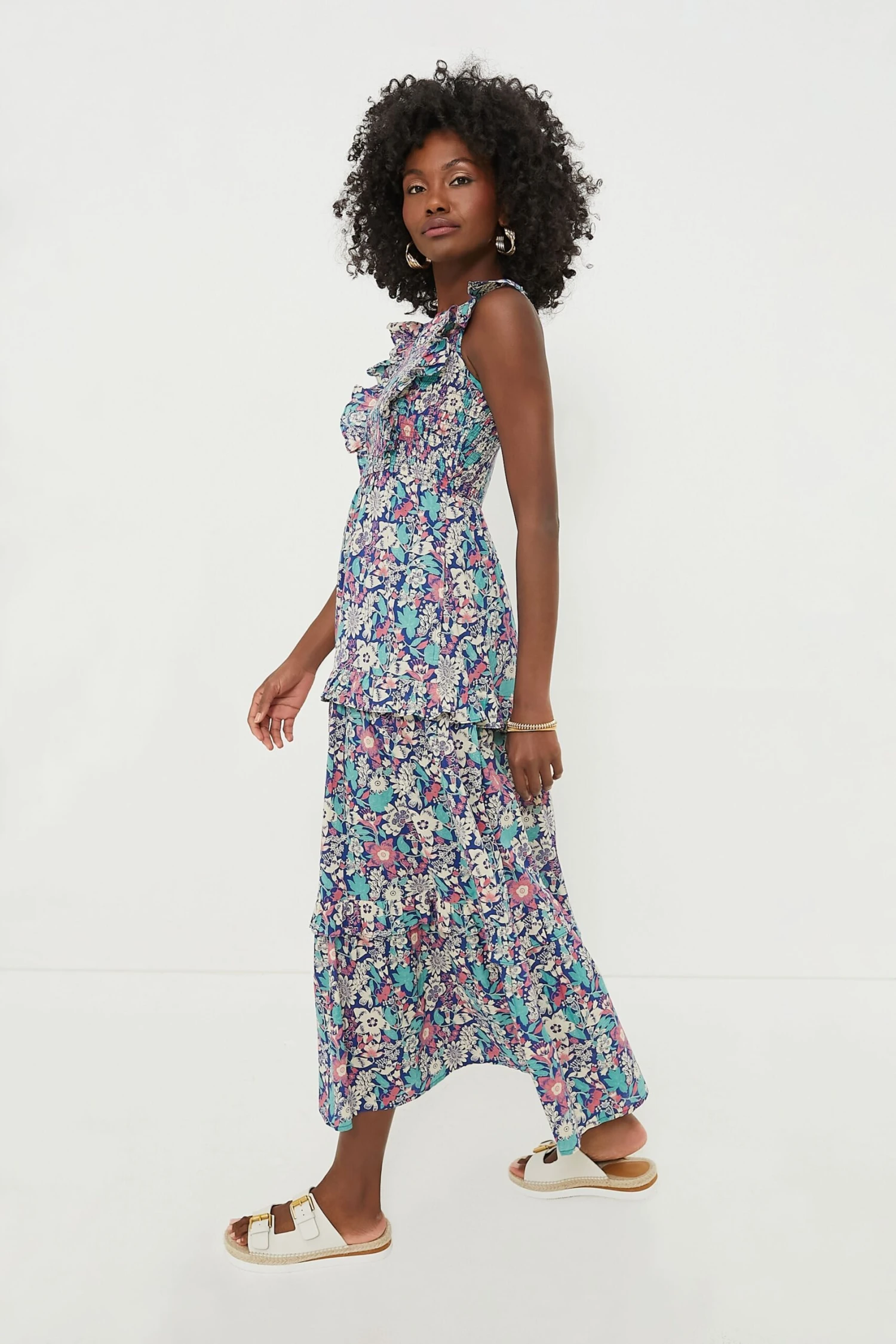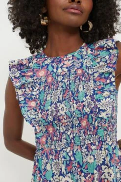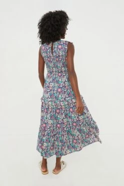 Reminiscent of a summer day, the Exclusive Blue Anna’s Wild Garden Iris Dress is a playful maxi that is classy and flattering. Complete with bodice ruching, ruffle sleeves, and a tiered skirt, this style can be dressed up or down for whatever your day brings. Pair with white sneakers for a casual look, or add statement earrings and platform sandals for a more elevated ensemble.Â