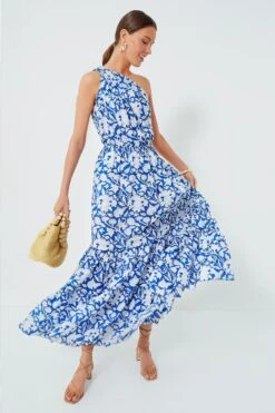 A best-selling style back in a new color exclusive to Tuckernuck, the Blue Botanica Long Dress is an easy yes! Crafted in a beautiful floral print, this maxi features a knotted one-shoulder asymmetrical neckline, an elasticated waist, pockets, and a flirty tiered hem. A great addition to your warm weather wardrobe, this piece is timeless and fun. Style with wedge espadrilles, gold accessories, and a shoulder bag for your next vacation or meal by the water.
