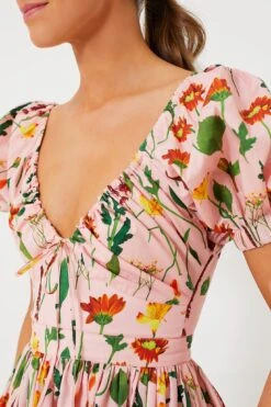A well-loved silhouette in a new Tuckernuck exclusive print, the Pink Floral Manzanilla Dress is ultra-chic. With its delicate botanical pattern, this mini is a cheerful choice that features a deep V-neckline that can be adjusted with the tie at the base, short puff sleeves, and a flirty hem length. Cut from light cotton, this fresh and feminine silhouette is the quintessential piece for sun-filled days and tropical nights — just add your favorite sandals and you’re good to go!