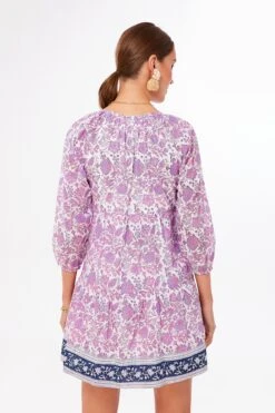 In a new colorway exclusive to Tuckernuck, the Exclusive Violet and Eva Pink Padra Dali Dress has loads of bohemian charm. Made from beautiful cool tones adorned with floral motifs, this mini features a notched neckline with ties, three-quarter length sleeves with a hint of volume, and a floaty tiered skirt that is ultra twirl-worthy. Perfect for sunny brunches and beachside hangouts, this style looks fabulous when styled with raffia accessories and your favorite sandals.Â