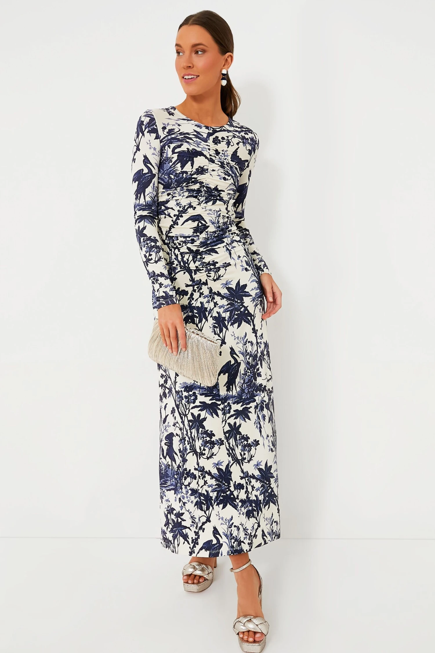 The Heron Navy Maisy Dress is like a breath of fresh air for your wardrobe! Boasting bold floral print and rendered in sustainable slinky jersey, this flattering A-line midi’s ruched bodice and lean sleeves offer day to night versatility for every occasion. Just add statement earrings, clutch and heels to make it a memorable occasion.