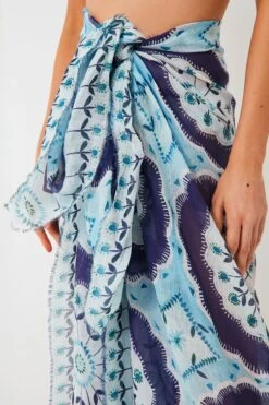 Striking– and just in time for the season, the Kennebunkport Pareo is completing all of our warm weather dreams! Lightweight, soft to the touch, and vibrantly fresh, this wrap style skirt can be worn as a coverup for an effortlessly chic beach to bar look. Plus, the kaleidoscopic inspired print is absolutely stunning. Throw on a suit, pack your beach bag, and you are sure to be in for a relaxing day under the sun.Â