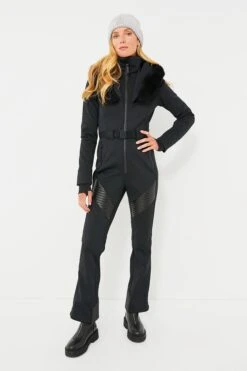 The Elle Suit is a one-piece down ski suit with a fitted silhouette and two-way stretch for ease of movement. Water resistant, repellent, windproof, and washable, it features a removable hood, quilted leather inserts at the shoulder yoke and thigh, and storm cuffs with thumb loops for a sleek functional performance piece. On and off the slopes you’ll be looking and feeling your best, hit the mountain and après ski!