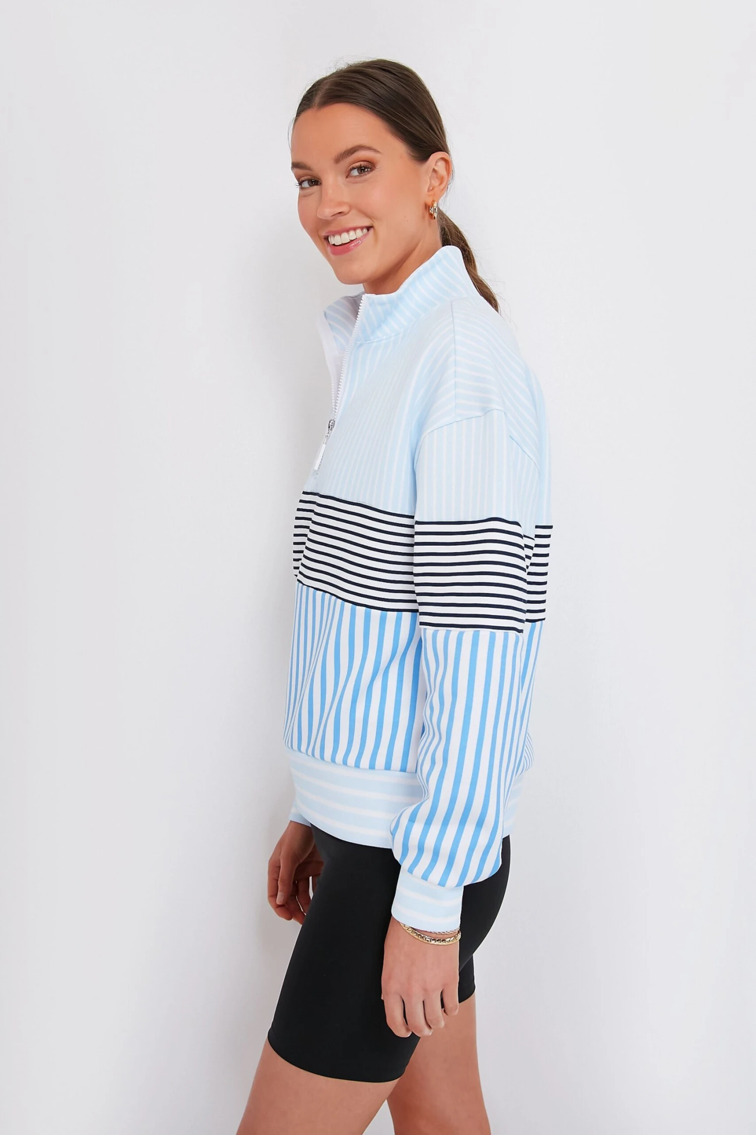 The Varsity Quarter Zip is our go-to layer. Featuring eye-catching color blocked stripes in various shades of blue, this cozy piece will have you looking and feeling your best. Pair with leggings, shorts, denim, you name it, for morning coffee runs and windy beach afternoons, we’re sure this essential number will have you covered. Â