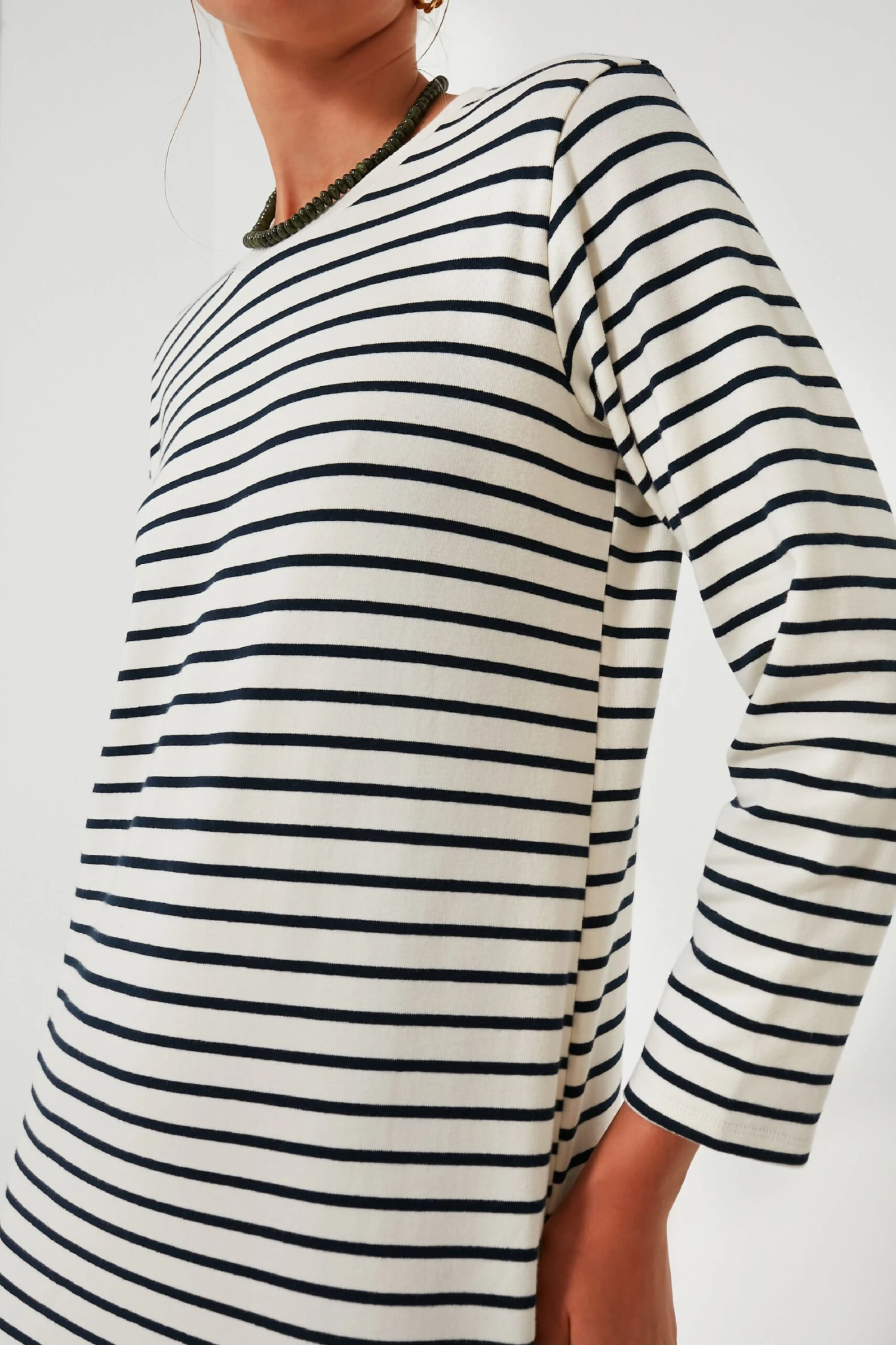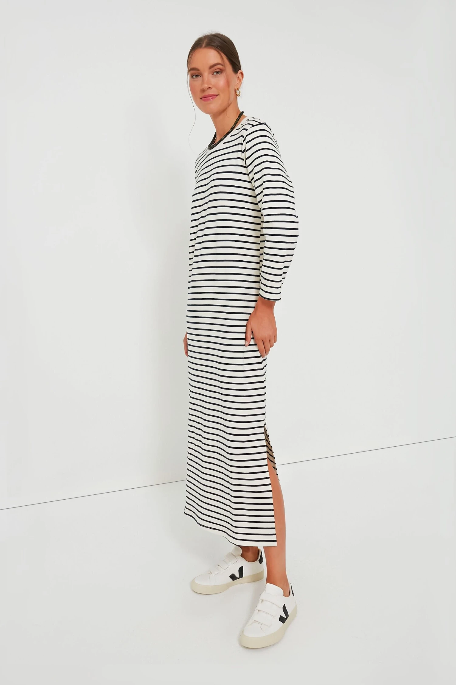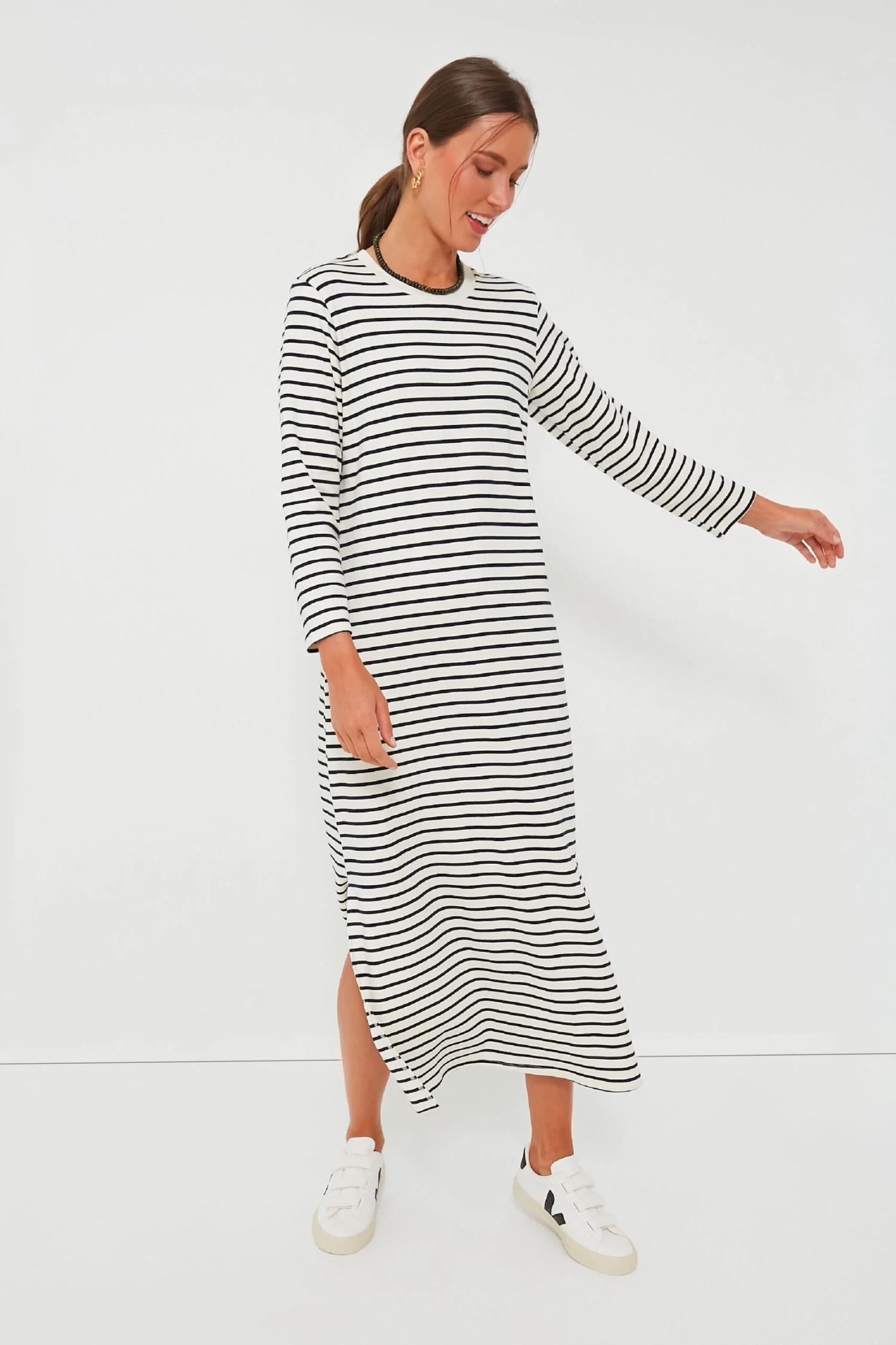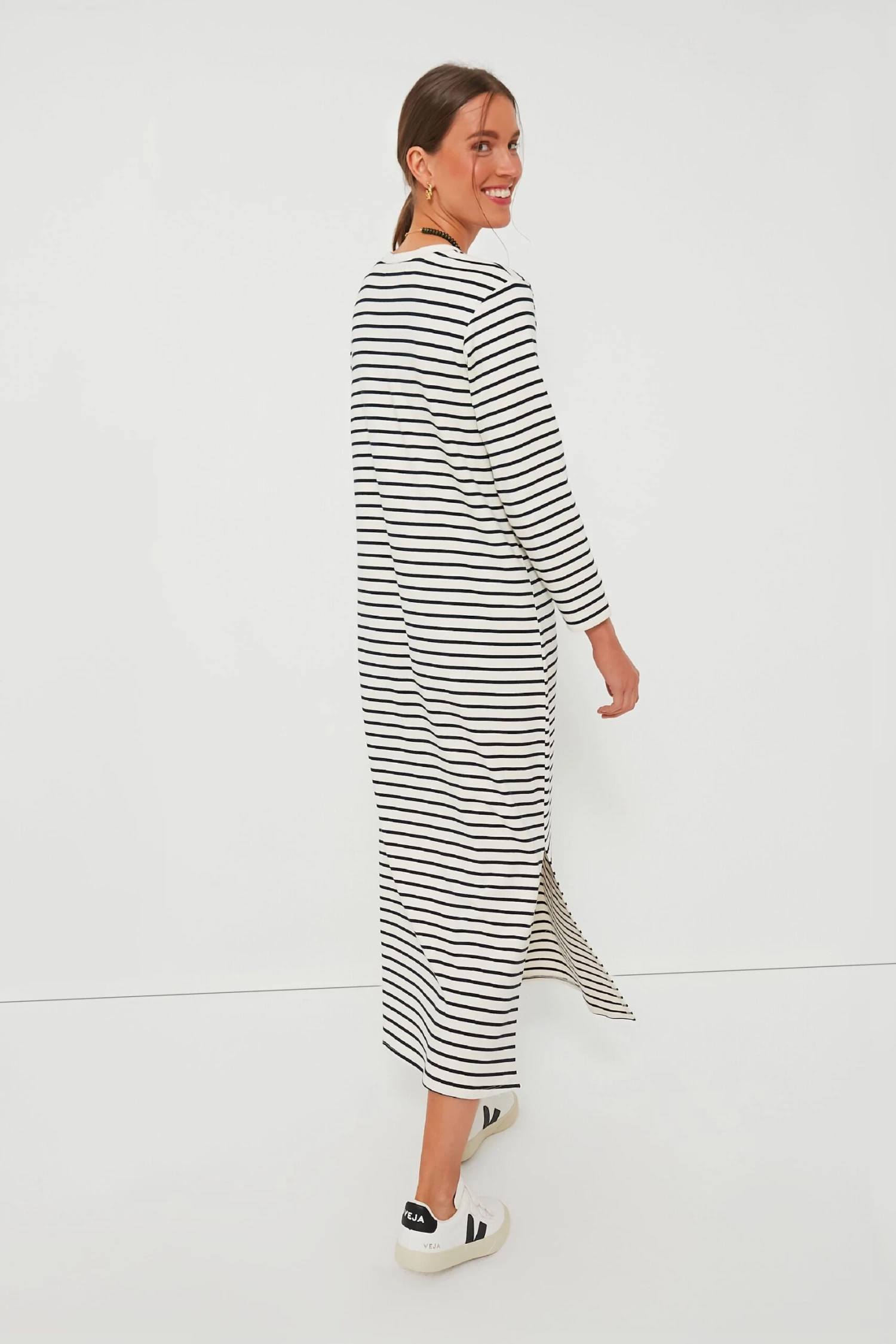 There should be no question why we love a t-shirt dress. Easy and comfortable yet put-together, the Navy Stripe Gio Dress features long sleeves and a crew neckline tied together with a maxi length and side slits for optimal movement and comfort. From day to night, this dress pairs seamlessly with everything from flats to sneakers.