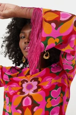 If your closet has been feeling incomplete, the chic vibes of the Orange Cocoa Crepe Dress is just what you need! This true power mini is inspired by Caribbean glamor of the sixties and seventies featuring an eye-catching bold print with long sleeves and playful tassel trim. This stunner is sure to earn you some compliments. Pair with heels and sparkly jewelry to make it a memorable occasion!