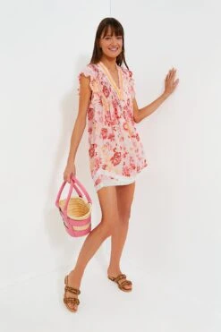 Have you ever seen a silhouette more suited for sunshine than the Pink 90s Sasha Dress? We sure haven’t! Beautiful bohemian details such as a contrast fringed neckline, a pintucked bodice, and flutter sleeves create a flirty and light mini that feels easy and care-free. This breezy style works just as well over a swimsuit to head down to the beach as it does with sandals and sunglasses for a coffee run, so take it along with you on your next warm weather adventure.