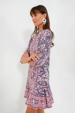 The Pink and Navy Floral Piper Dress is the flirty frock your wardrobe is missing! This cotton mini features a band collar with button front placket and a fun flutter hemline to create a style that encapsulates unfussy femininity. Style it with wedges and a tote for your next warm weather getaway!