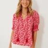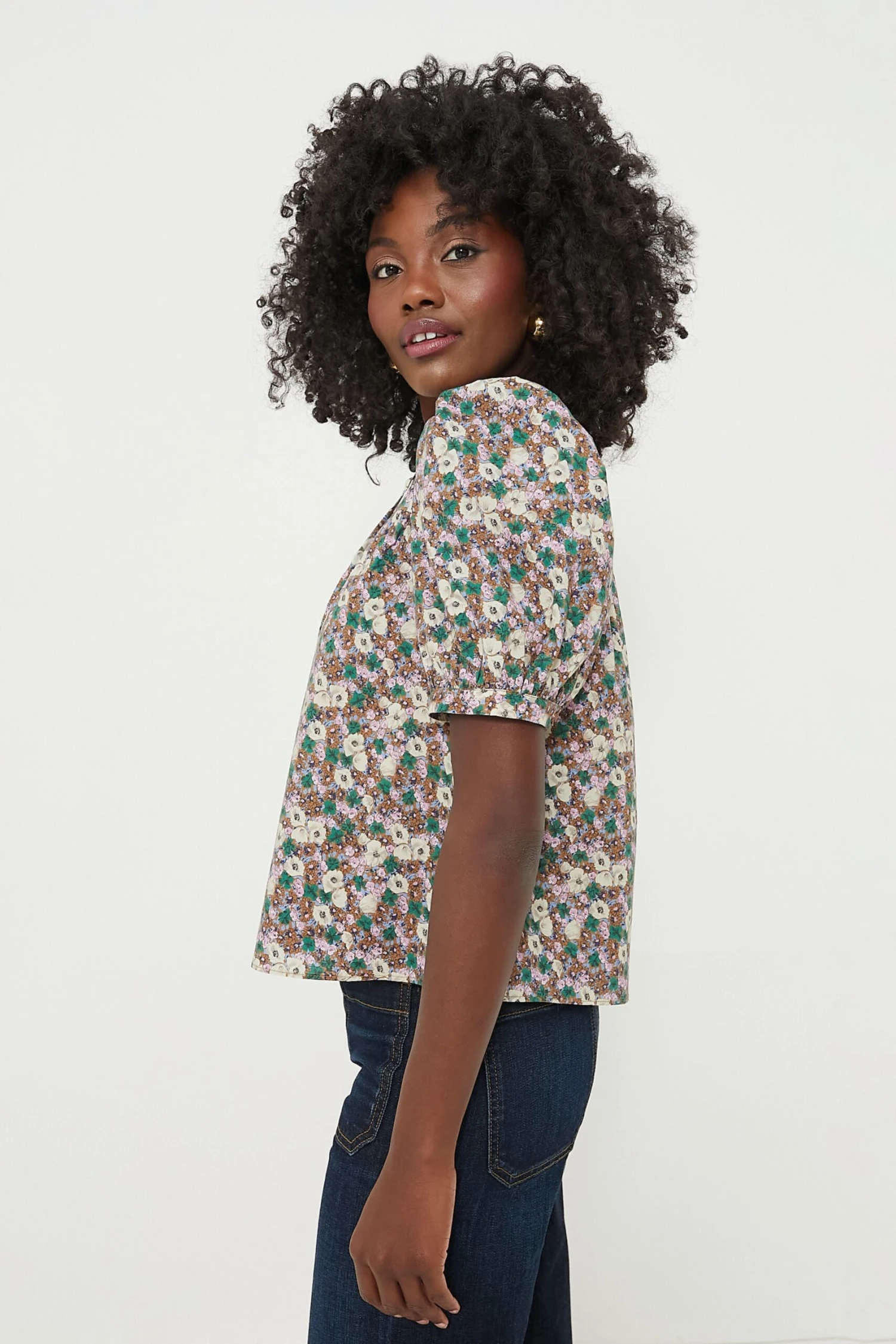 The Purple Multi Floral Petunia Blouse is a perfect style to carry you from weekdays to weekends. A straight silhouette that boasts short sleeves with shirring around the shoulders, a V-neck with a self-tie, and a ditsy floral pattern, this feminine beauty can easily be dressed up or down. Pair with denim shorts and sneakers for a casual lunch date, or with dark denim and ballet flats for work meetings.