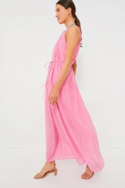 Indulge in timeless allure with the Rosa Giovanna Maxi- a blend of vintage charm and modern sophistication. The flattering silhouette boasts a classic drop-waist, a softly gathered scoop neck, and a removable criss-cross belt. The bubblegum color is playful and feminine- simply pair with sandals and statement earrings for a warm-weather ensemble!