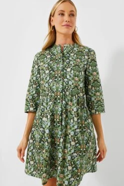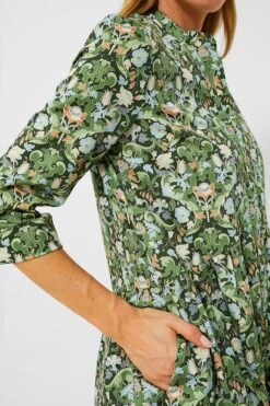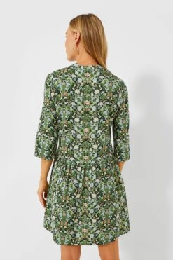 This beautifully printed silhouette is made for your closet! The Sage Deco Damask Royal Shirt Dress is amazingly lightweight and a perfect transition piece that is easy to accessorize. Featuring a round neckline, three-quarter sleeves, and a front button placket, this mini is flattering and flirty. Style with white sneakers and a hat for running errands or dress it up with heels and statement earrings for dinners al fresco.Â