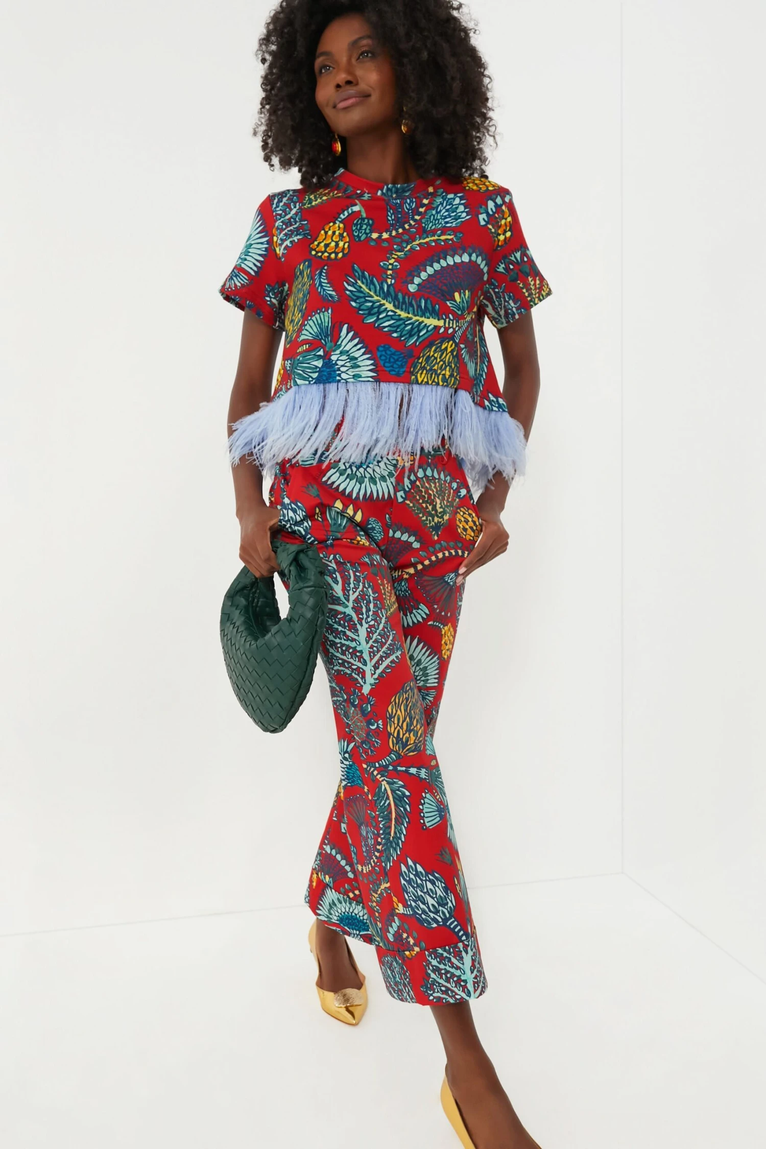 The Sicomore Hendrix Pants are made for party princesses. In a stunningly printed fabric, these chic pants feature a high rise, a single pleat down the front to elongate the legs, and a subtle flare at the ankles. The combination of sleek silhouette and bright color is a look we cannot get enough of! Style with the matching La Scala Tee for a statement look that is sure to turn heads, or pair with a solid-colored blouse for a slightly more muted look.