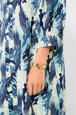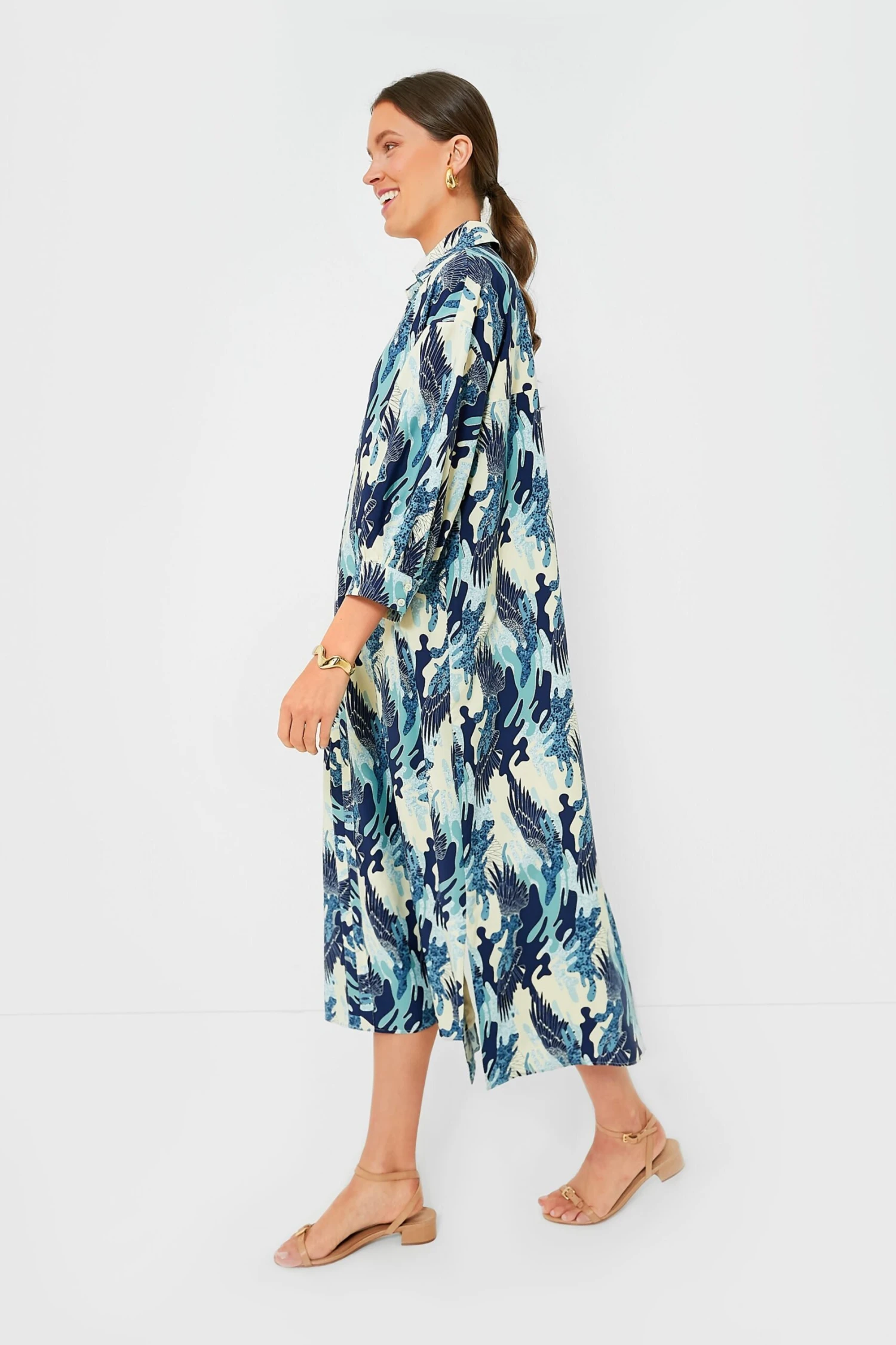 Subtle in silhouette, with a fun print, the Sloane Collared Shirt Dress is a stellar statement-maker! Crafted from a smooth silk like fabric and featuring all classic details like a crisp collar, quarter length sleeves and a front button placket, this relaxed maxi length will keep you feeling like your best breezy self. Just add sandals and a tote, this resort staple will take you from the beach to dinner and drinks.Â