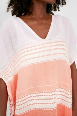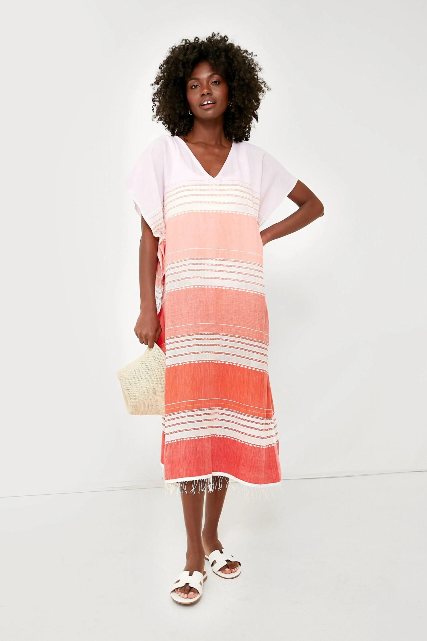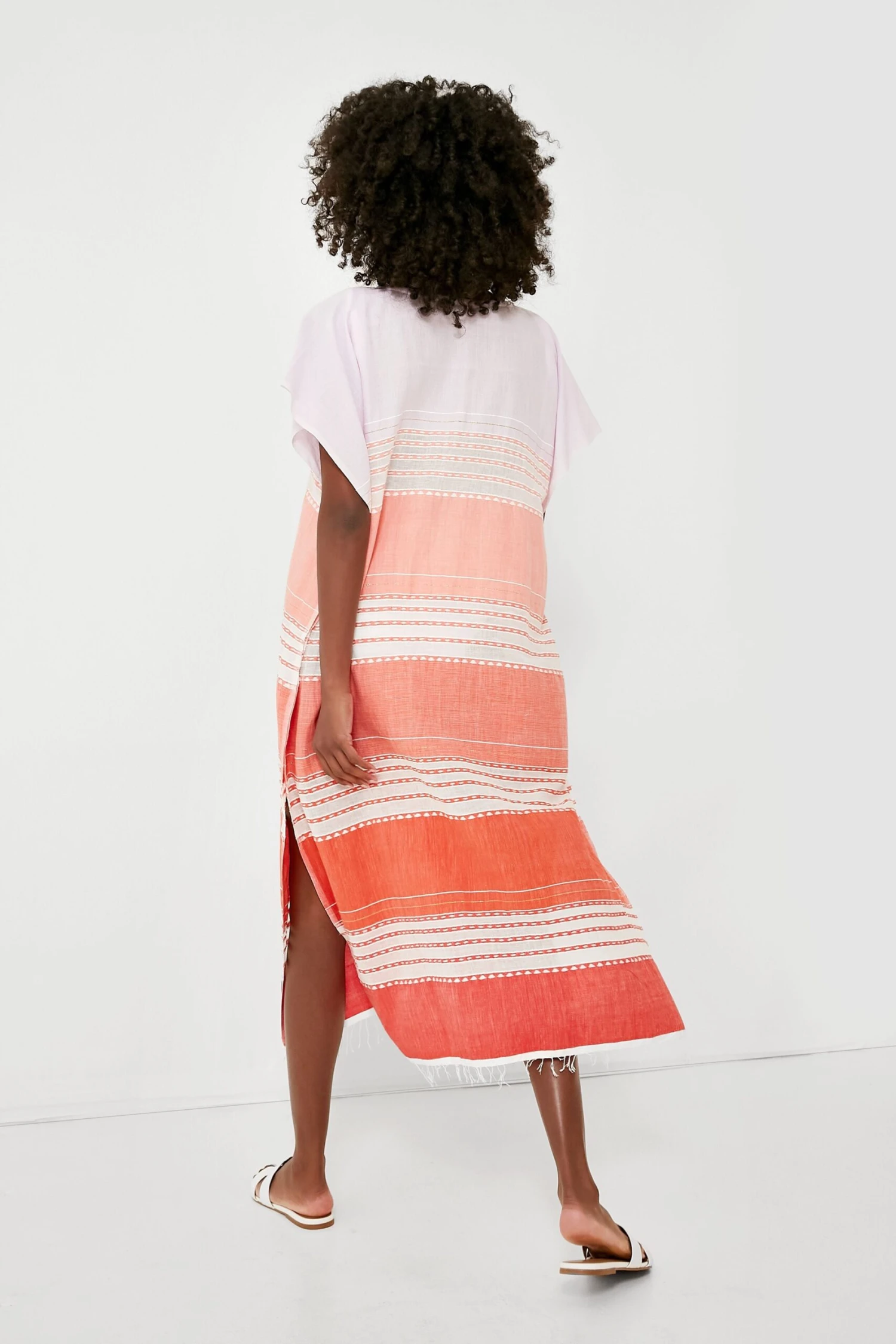 With a gradient of stripes made to evoke sunrise and sunset, the Tangerine Eshal Classic Caftan is the easy breezy number you’ve been searching for. Simple yet stylish details including a V-neckline, cap sleeves, and a fringed hem make this midi the life of the party for beach days, seaside happy hours, and poolside hangouts. Handwoven from Ethiopian tibeb cloth for a lightweight and airy composition, this is a wardrobe winner for sure!