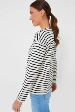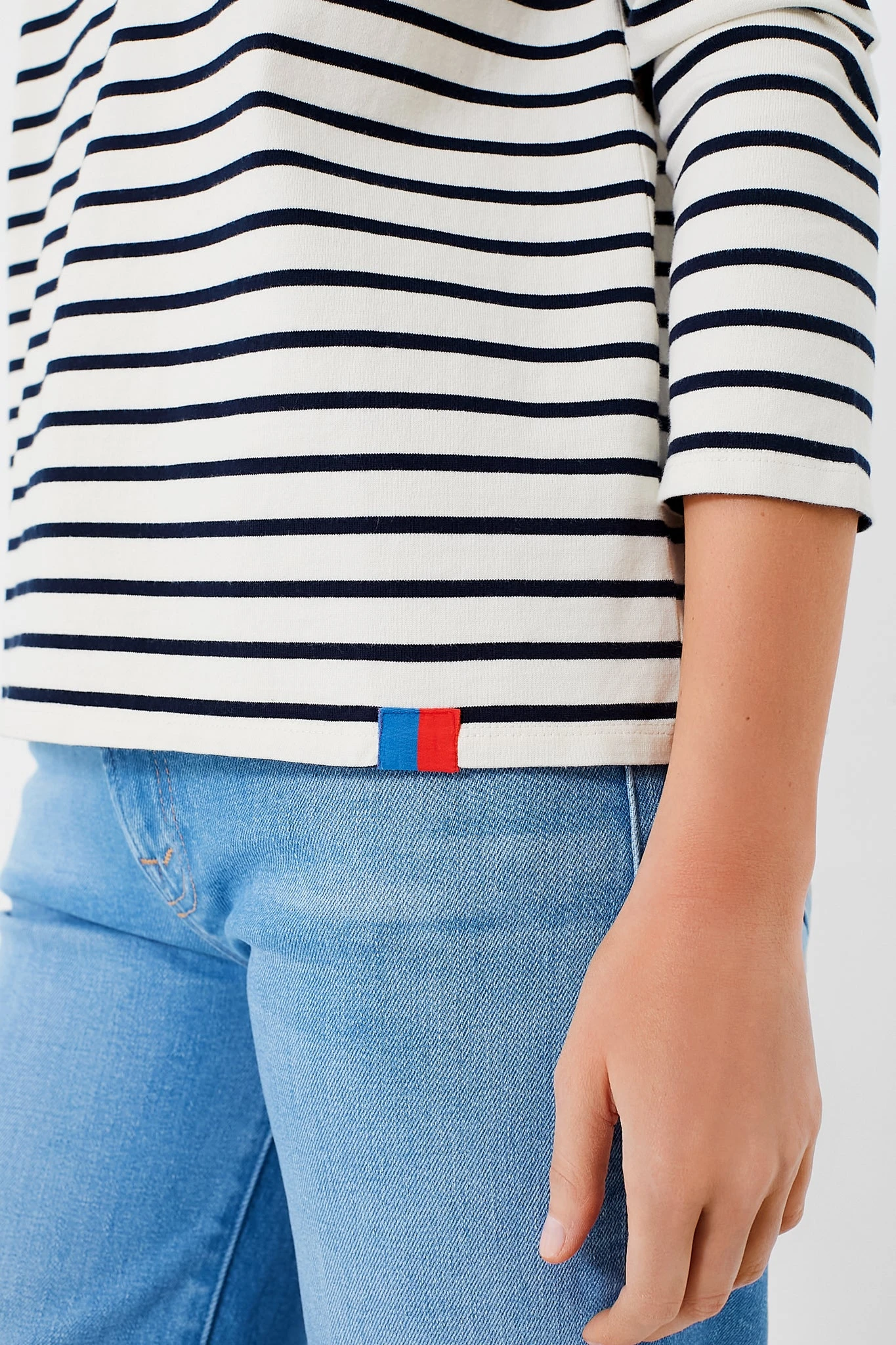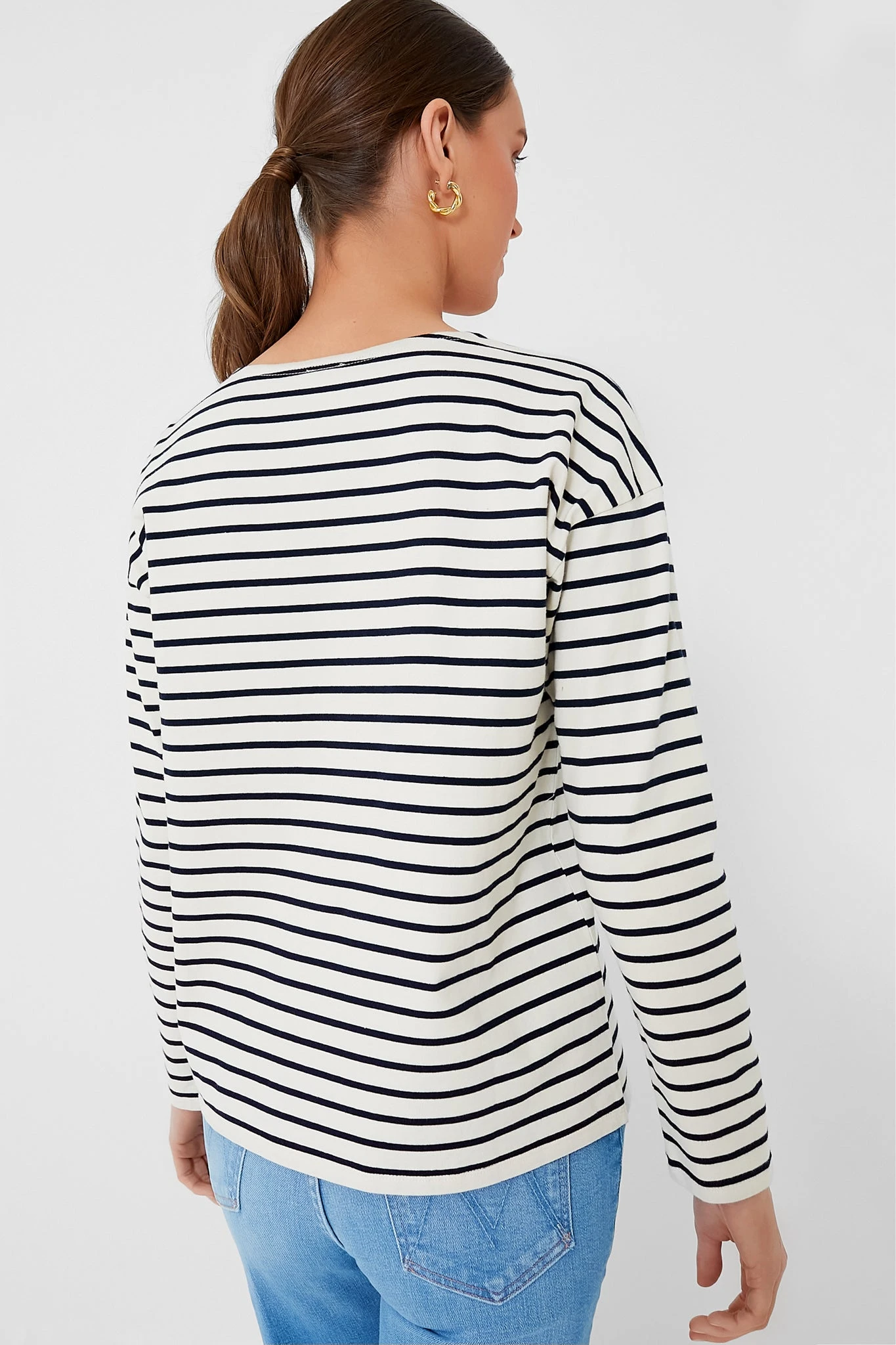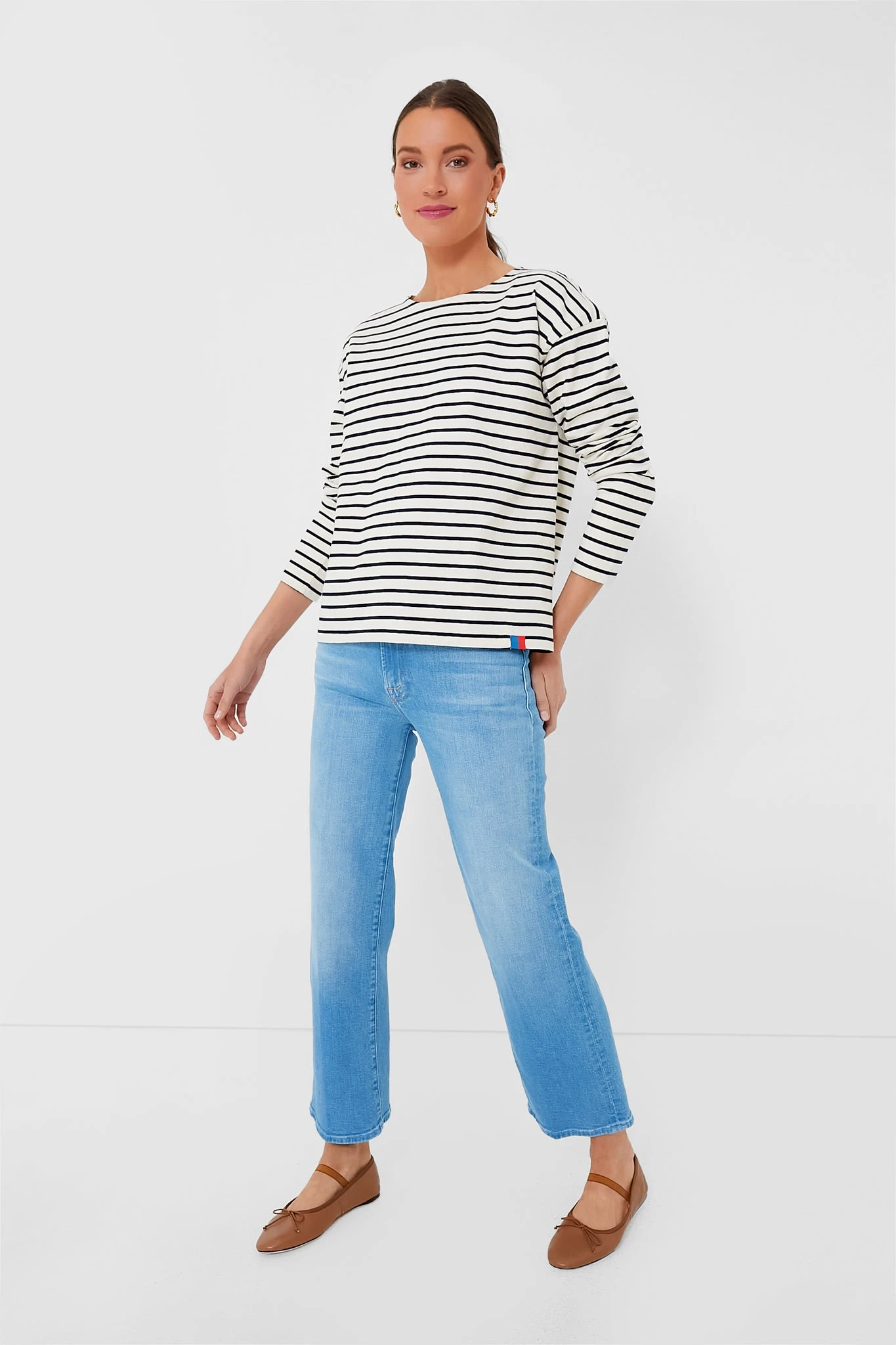 A favorite silhouette, the Boyfriend top has made a comeback in Cream and Navy. A drop shoulder and roomy body give this piece a relaxed quality, while the trim sleeve adds a bit of femininity. Made from a midweight 100% cotton knit jersey, this is Kule’s modern take on the traditional marinière.