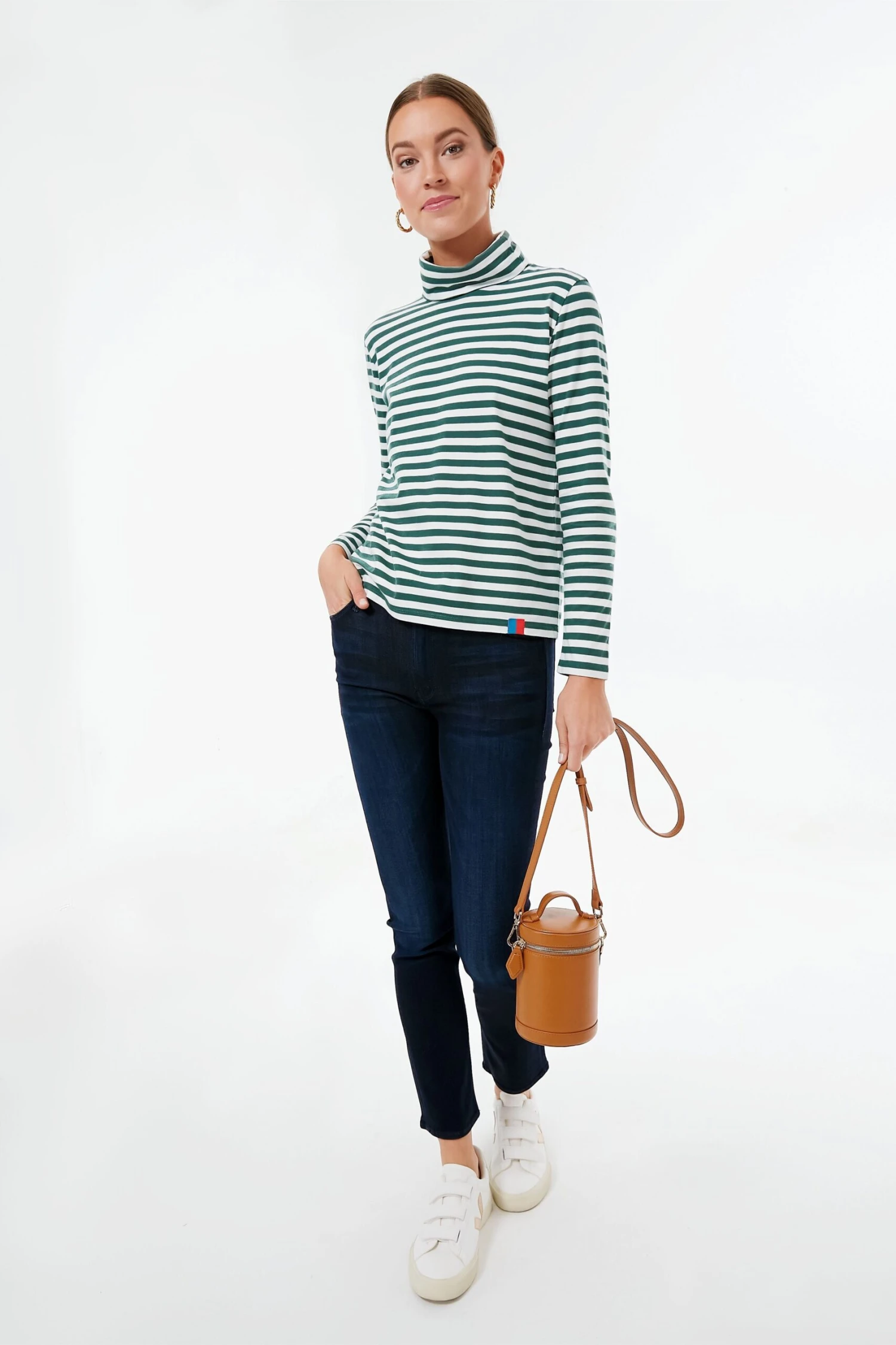 The Forest and Cream Turtleneck bases its design on the styles worn by Picasso and Brigitte Bardot, with the cozy addition of a high neckline. Featuring a straight, boxy cut, this is fitted perfectly for a feminine shape but loose enough for a relaxed look. Made from light and airy tissue-like cotton, it is the perfect layering piece as the days get cooler, so try it under a cardigan for brunch or under a puffer coat for a walk in the crisp air, or on its own to curl up by the fire.