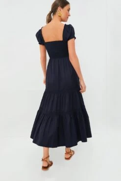 Tory Burch Medium Navy Smocked Cotton Dress