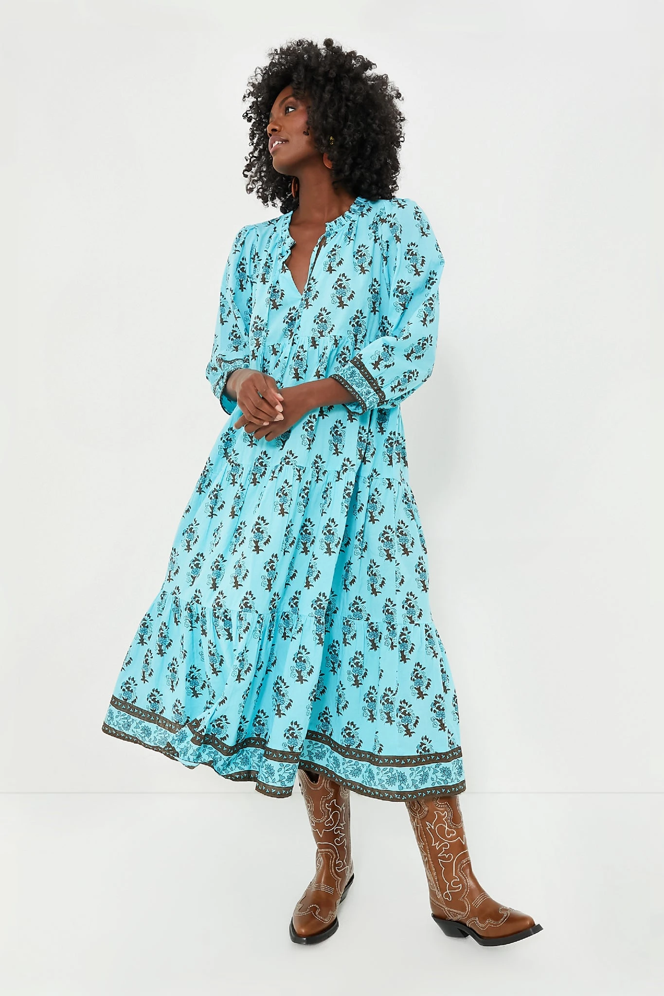 Updated with sleeves, the Tropical Turquoise Bouquet Salty Paloma Caftan is effortlessly elevated — and perfect for warm weather escapes and weekend getaways. With a ruffled collar and tassel ties that embody bohemian style, as well as a light and breezy feel, this is the piece you will want to throw on in the morning and keep on all day, zero thought required. Pair with sandals and sunnies for poolside sips, or with boots and gold hoops to dress it up for dinnertime.