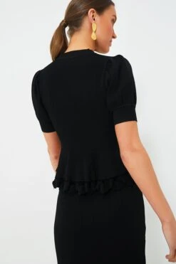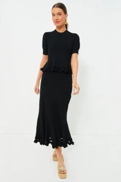 Beautifully crafted, the Noir Esma Top is a classic closet staple with feminine details. Structured from a compact knit, this top blends comfort and elegance with puff sleeves, a peplum hem, and a hand-crotched trim inspired by tulips. Pair with the Noir Ayla Skirt and heels for a set that can go from work meetings to dinner.