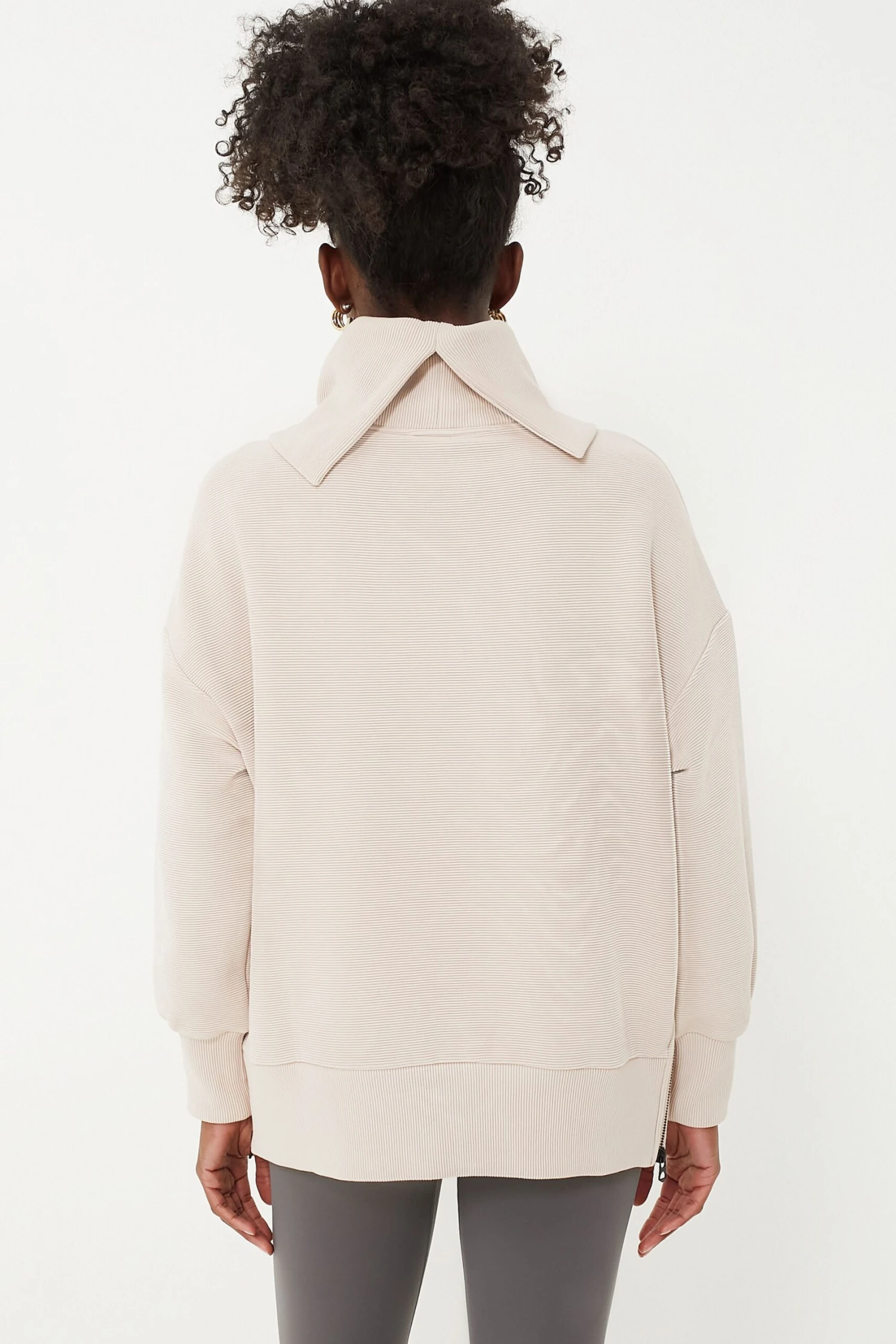 The Mushroom Milton Sweat is a beautifully oversized sweatshirt, with a statement roll neck cut in Varley’s signature ottoman rib. With its beautiful bellowed sleeves, side zip detailing, dropped shoulders, and deep cuffs, this is your contemporary wardrobe essential. Relaxing has never looked so good with this neutral number, add leggings or sweatpants for an effortlessly put together, girl-on-the-go look.