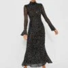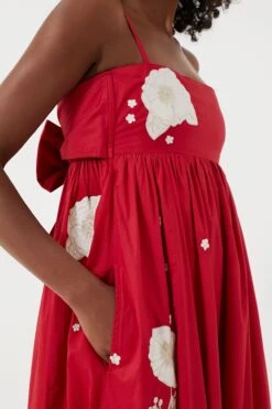 The Gavin is a captivating midi-length dress accented with fringe at the hem, hand placed embroidery embellished with pearl-like beads, and beadwork accents throughout. The playful flower motif and intricate beading add the perfect touch of whimsy. The full, flowing skirt and empire waist flatter your silhouette, and allow you to twirl and dance with ease.Â