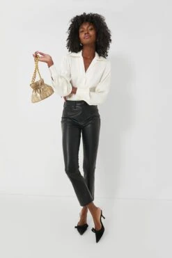 Crafted from a soft vegan leather with a hint of stretch, the Black Carly Kick Flares are a brand favorite! Featuring a skinny leg that’s fitted through the hips and thighs then widens at the ankle, these bottoms are oh-so-flattering and deliver the ultimate cool-girl vibe. Finished with a slightly cropped inseam, these pants pair beautifully with heels, boots, loafers, and more! Style with a tee and flats for an off-duty look, or dress these stunners up with a sleek top and slingbacks for a fun yet fierce night out ensemble.Â