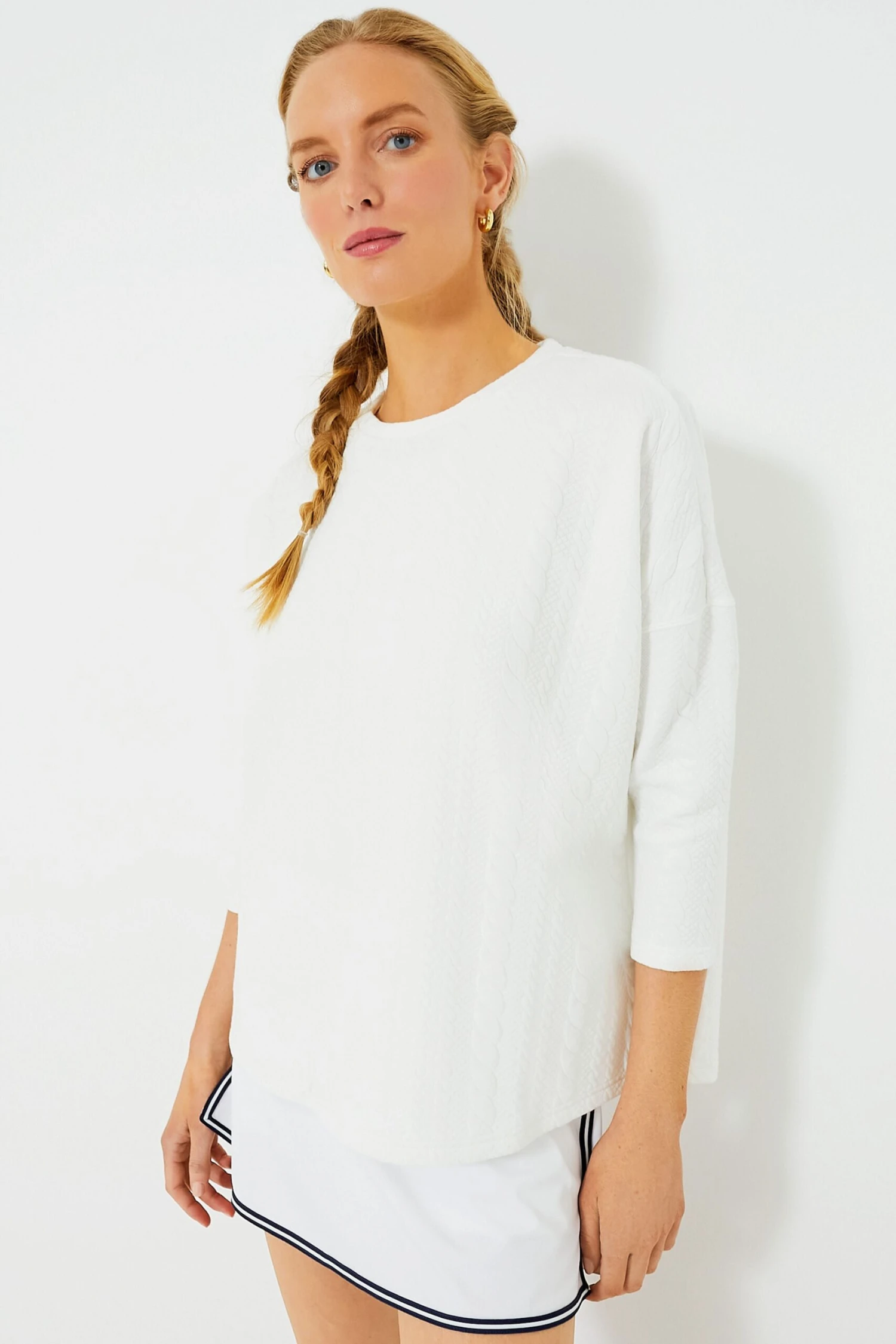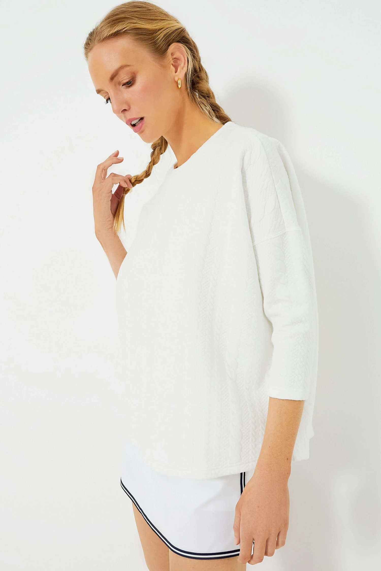 The perfect outfit topper to take you from a warm-up run to a coffee run, the White Cable Ally Swing Sweatshirt was designed with mobility in mind. This soft-to-touch, best-selling style features classic cable quilting, slimming, fitted sleeves, and a swing shape body that pairs perfectly with leggings, shorts, and performance skirts for an all-activities piece.