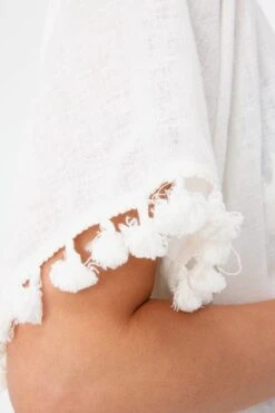Easy, breezy and always ready for an adventure in the sun, the Katie Caftan is our go-to when picking a lightweight cover-up. Slightly sheer and detailed with pom-pom tassels all around the edges, this V-neck mini is the perfect amount of chic and fun for an easy beach look. Toss it over top of your best bikini and sip your mojito in style by the pool.