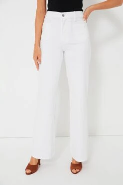 On-trend and classic, the White Virginia Wide Leg is cut from the denim blended with the perfect amount of stretch for a comfortable fit. Boasting a high waist silhouette and front patch pockets, this retro-inspired style will instantly become your go-to pair of jeans. Pair with a boho blouse and sandals for a day of adventures, then swap for a silky blouse and wedges for date night.Â